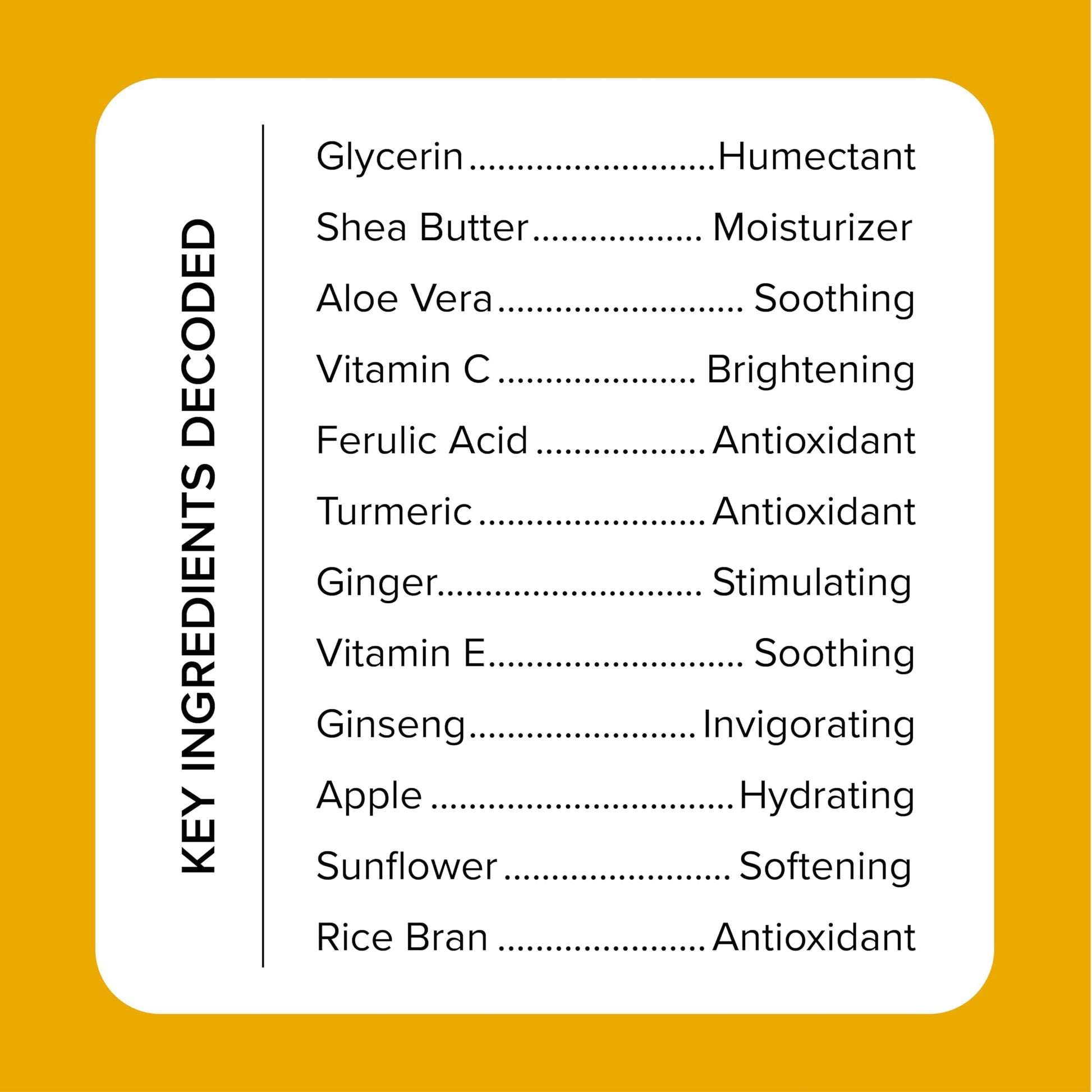 - EFFECTIVE BRIGHTENING INGREDIENTS – This MEDIX Brightening Vitamin C Cream is formulated with the perfect combination of effective anti aging + brightening ingredients, including Shea Butter, Aloe Vera, Ferulic Acid, Turmeric, Vitamin E, Glycerin, Ginger, & More. Shea Butter deeply moisturizes the skin, improves elasticity, & provides a protective barrier to help prevent moisture loss. Vitamin E helps protect skin against free radicals + UV Damage. Aloe Vera helps calm + hydrate the skin.