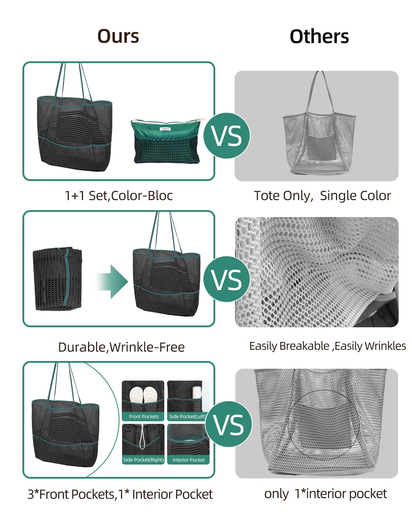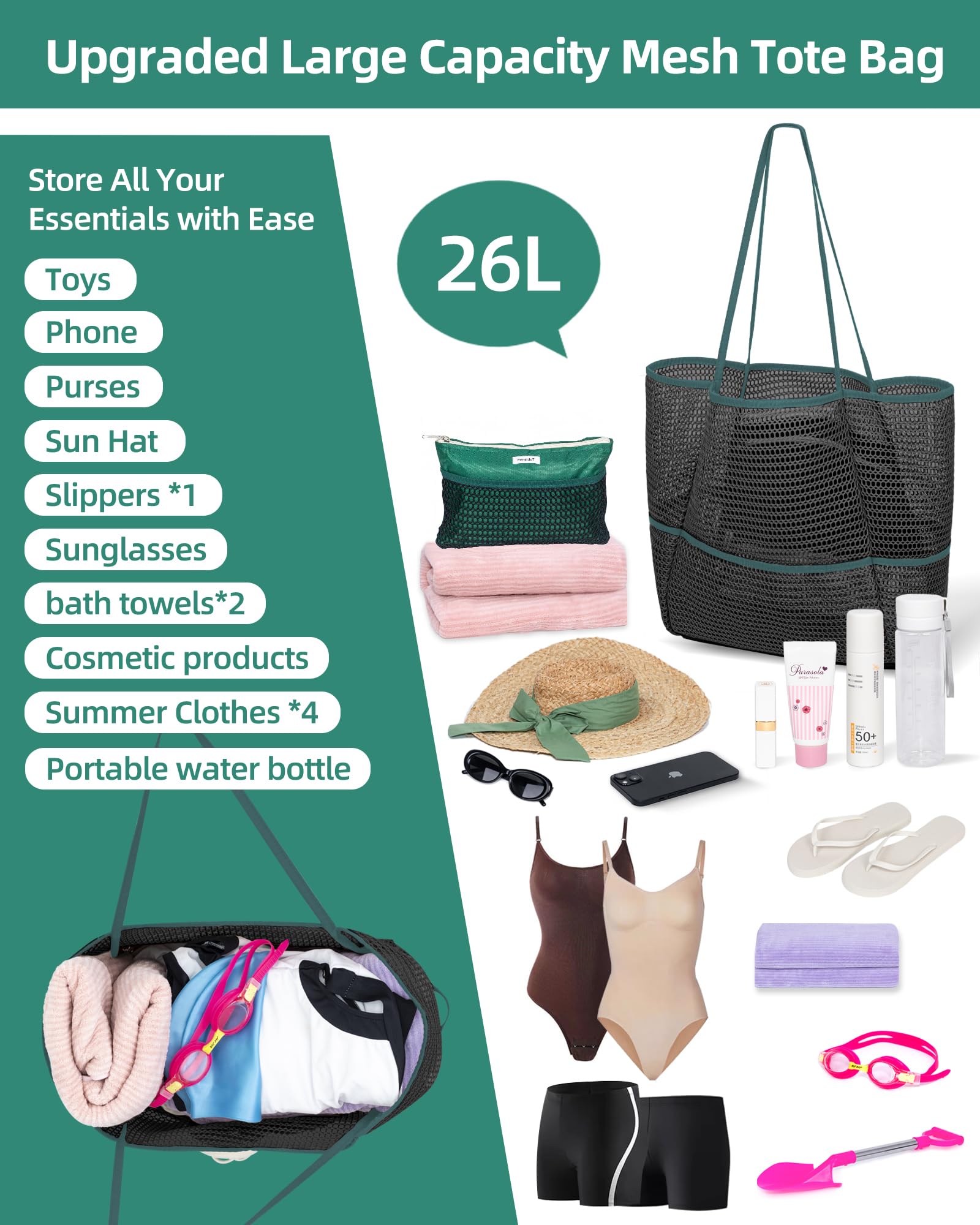 - 3.【💪 Durable, Sandproof & Wrinkle-Resistant Mesh】 Made from premium quick-dry mesh, this bag shakes off sand easily, resists wrinkles, and stays fresh even after repeated use. Reinforced stitching & sturdy handles ensure long-lasting durability.