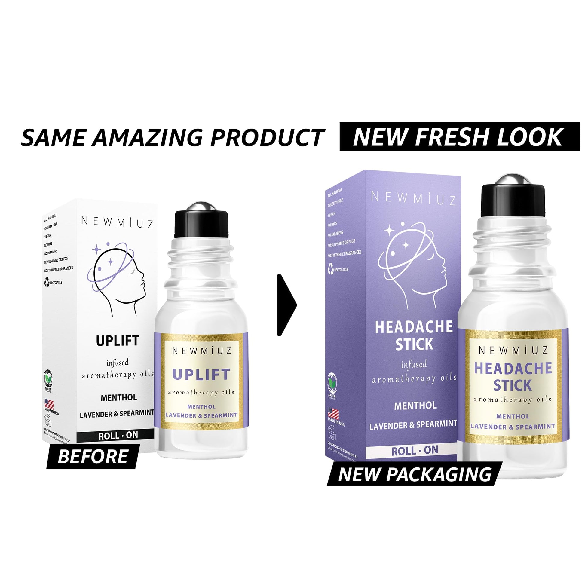 - Migraine Roll on Stick roll on stress relief blend essential oil - applied throughout the day when you feel overwhelmed or seeking a quick TLC during a stressful day. Apply before meditation and yoga to unwind and support relaxation. The perfect essential oil blend; Calming lavender, Soothing Menthol and Spearmint.