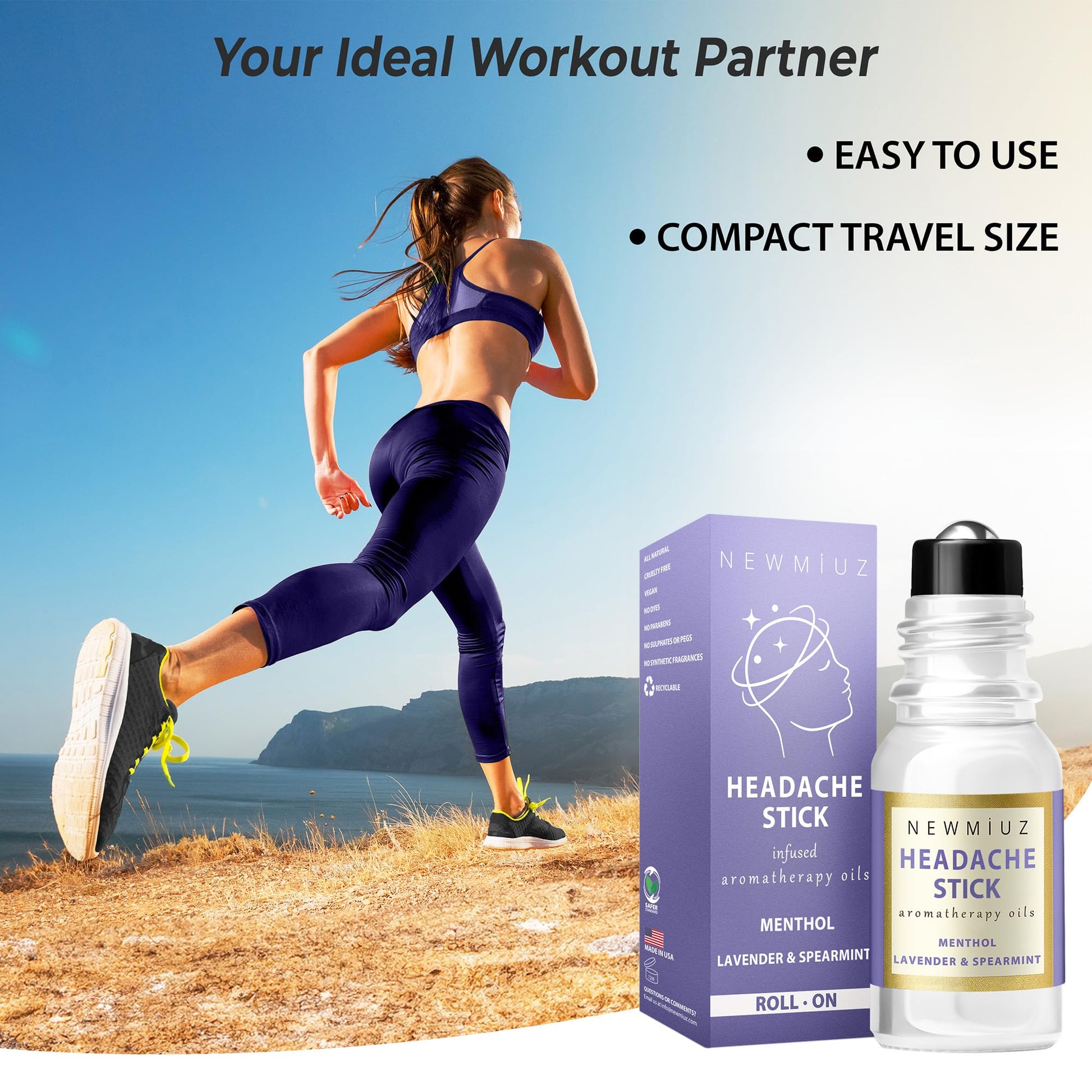 Migraine Roll On Stick - Menthol Fast Cooling Comfort for Your Headache Tension. Aromatherapy Essential Oils Blend Peppermint Lavender Spearmint. Self Care Calming Gift for Women Men. Made in USA