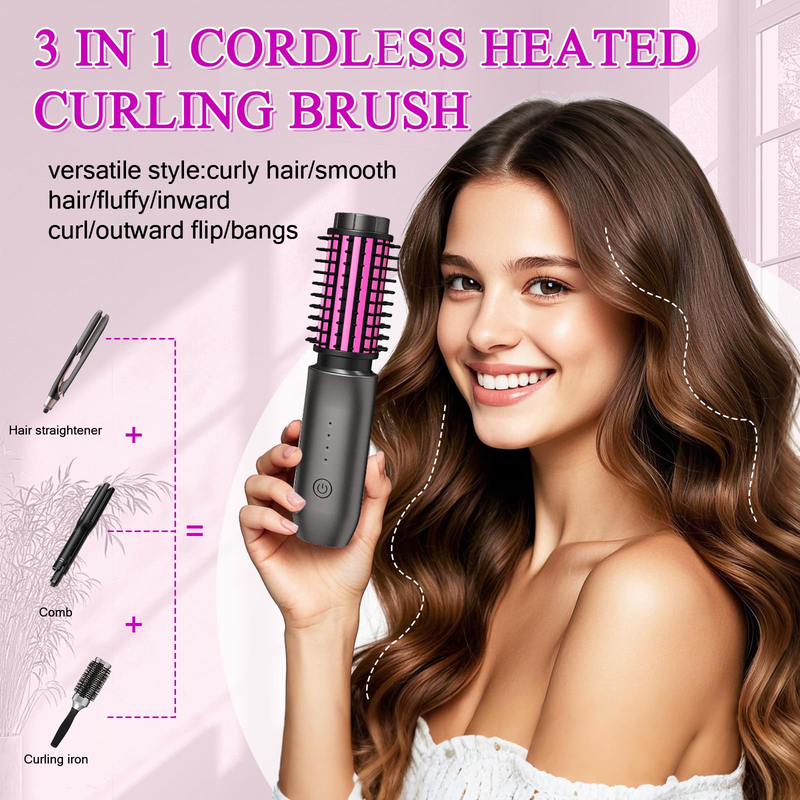 - 【Portable Curling Iron Designed for Travel】 With a lightweight and mini design, this portable curling iron cordless easily fits into your handbag or carry-on. No more bulky tools—this travel-friendly curl brush is ideal for women who want beautiful hair on the go