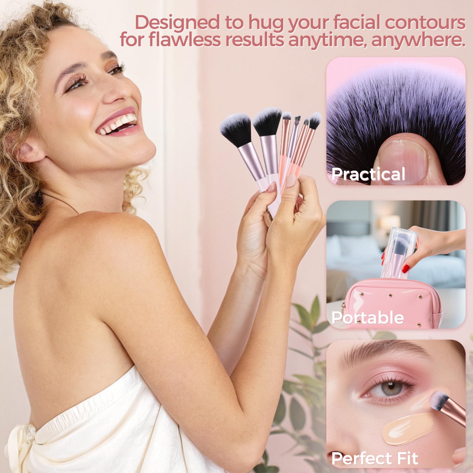 - Travel Makeup Brush Set: This mini makeup brush set is designed with a small, foldable packaging design, which is the ideal size to put in a travel bag or put in a small bag, this set includes essential face and eye brushes like Tapered Powder, Flat Top Blush, Kabuki, and Precision Eyeliner brushes, suitable for professional use, home use, travel or even work.