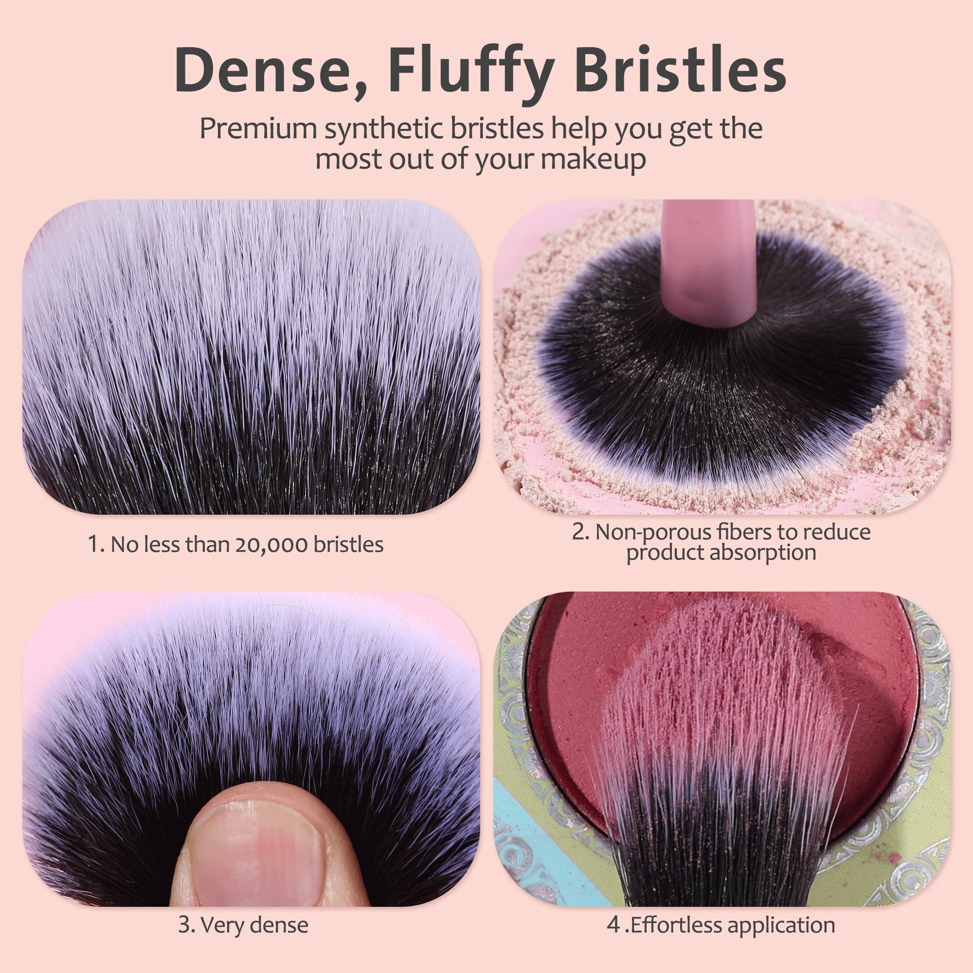- High-quality bristles: Made of high-quality synthetic fibers, vegan and cruelty-free, super soft, pat the product gently for a perfect, full coverage effect, strong powder grabbing power, but will not absorb the foundation into the brush itself.