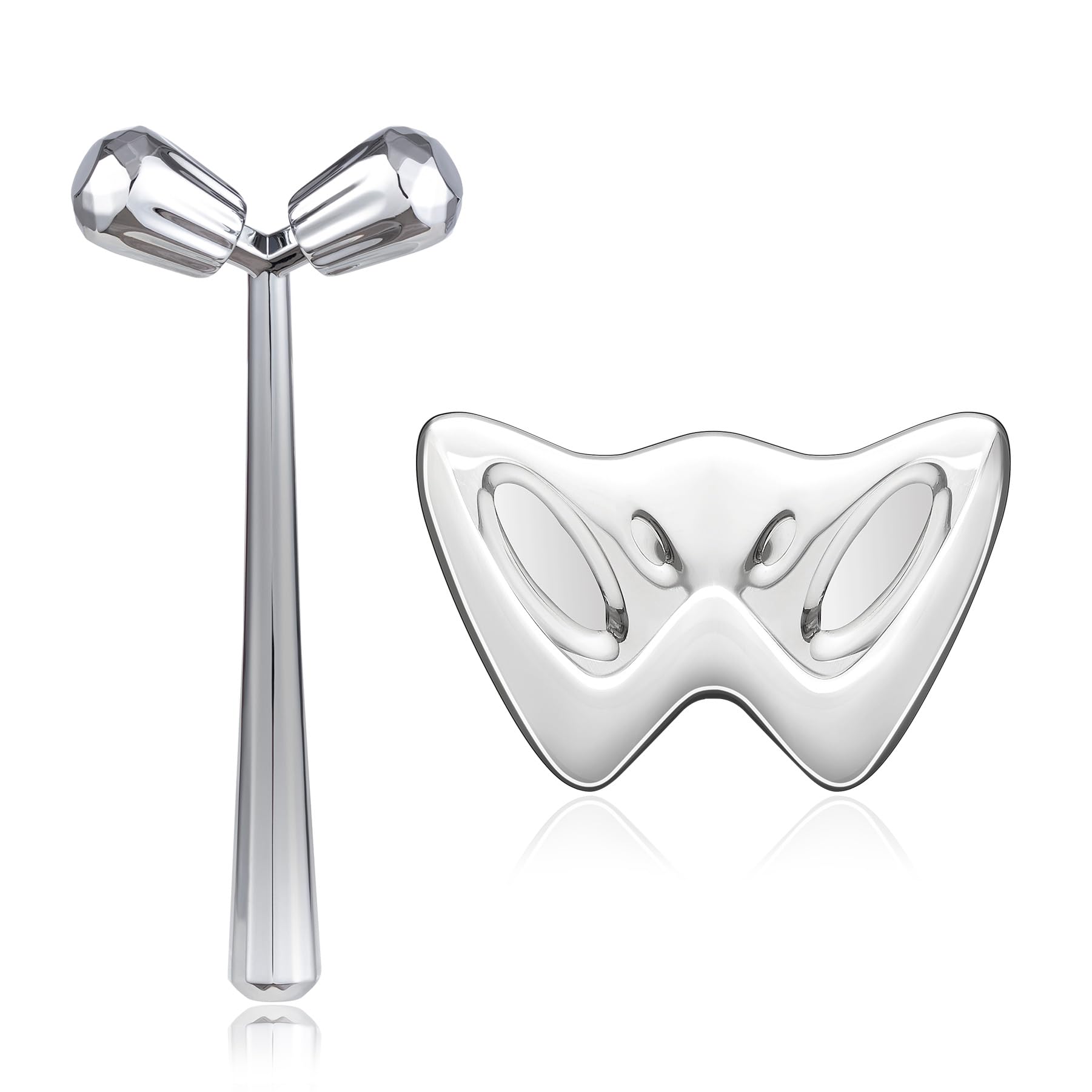Moikiwi 2PCS Gua Sha Cooling Facial Tool, Stainless Steel Massage Tool, Scraper Tool for Soft Tissue Physical Therapy Stuff, Guasha Beauty Tool for Body Eyes Neck, HD