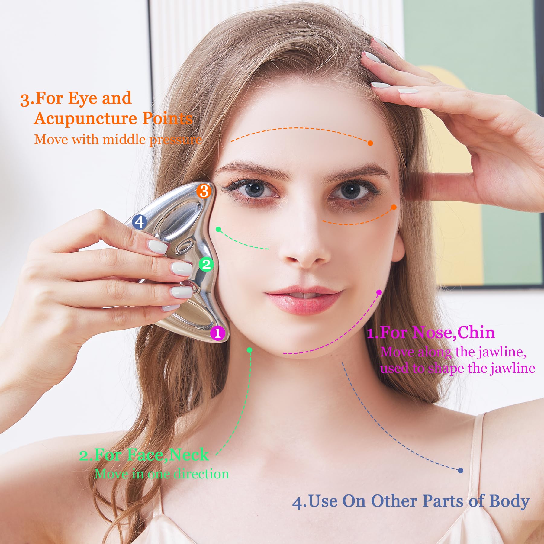- High-Quality Material: Crafted from premium stainless steel, our gua sha tool offers durability and minimal friction for sensitive support. Each piece is meticulously polished to a mirror-like finish, ensuring it is smooth and effortless to clean. This represents a significant advancement from traditional gua sha stones. Ideal for facial SPA treatments, the smooth edges of the scraper are designed to gently touch and massage your skin without causing any discomfort, allowing for precise manipulation during your skincare routine