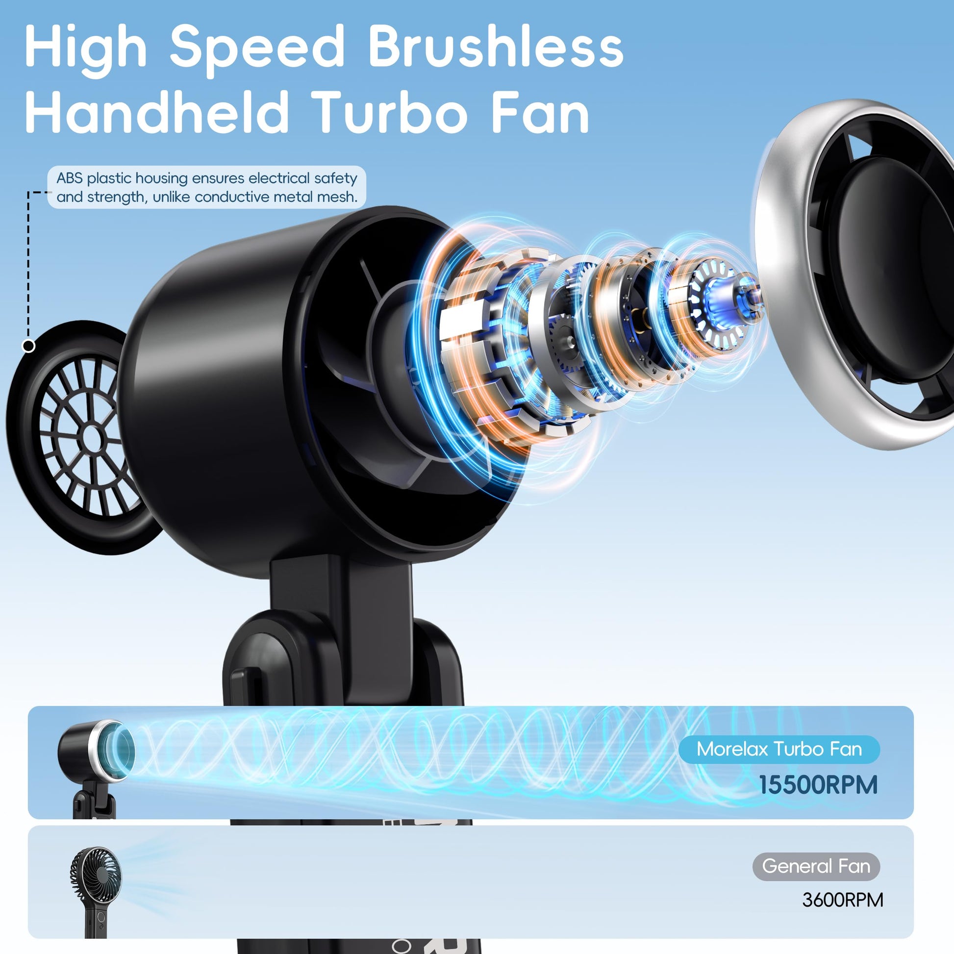 Morelax Personal Handheld Fan,High-Speed Turbo Fans,5-Speed with LED Display,Powerful Motor,4000mAh,USB Rechargeable Portable Cooling Fan for Outdoor Activities,Travel,Working,Black