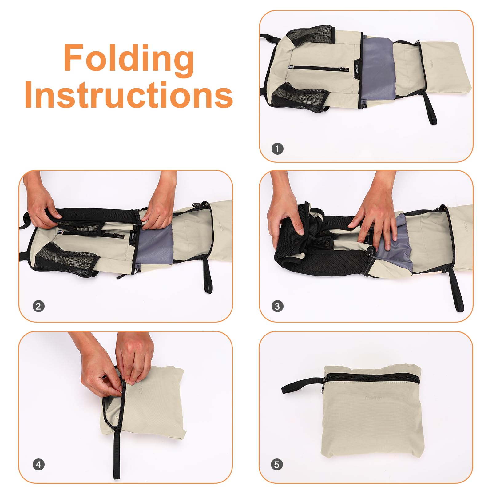 MOSISO 10L Lightweight Hiking Daypack Small Packable Travel Hiking Backpack, Foldable Shoulder Bag with Front Vertical Pocket, khaki