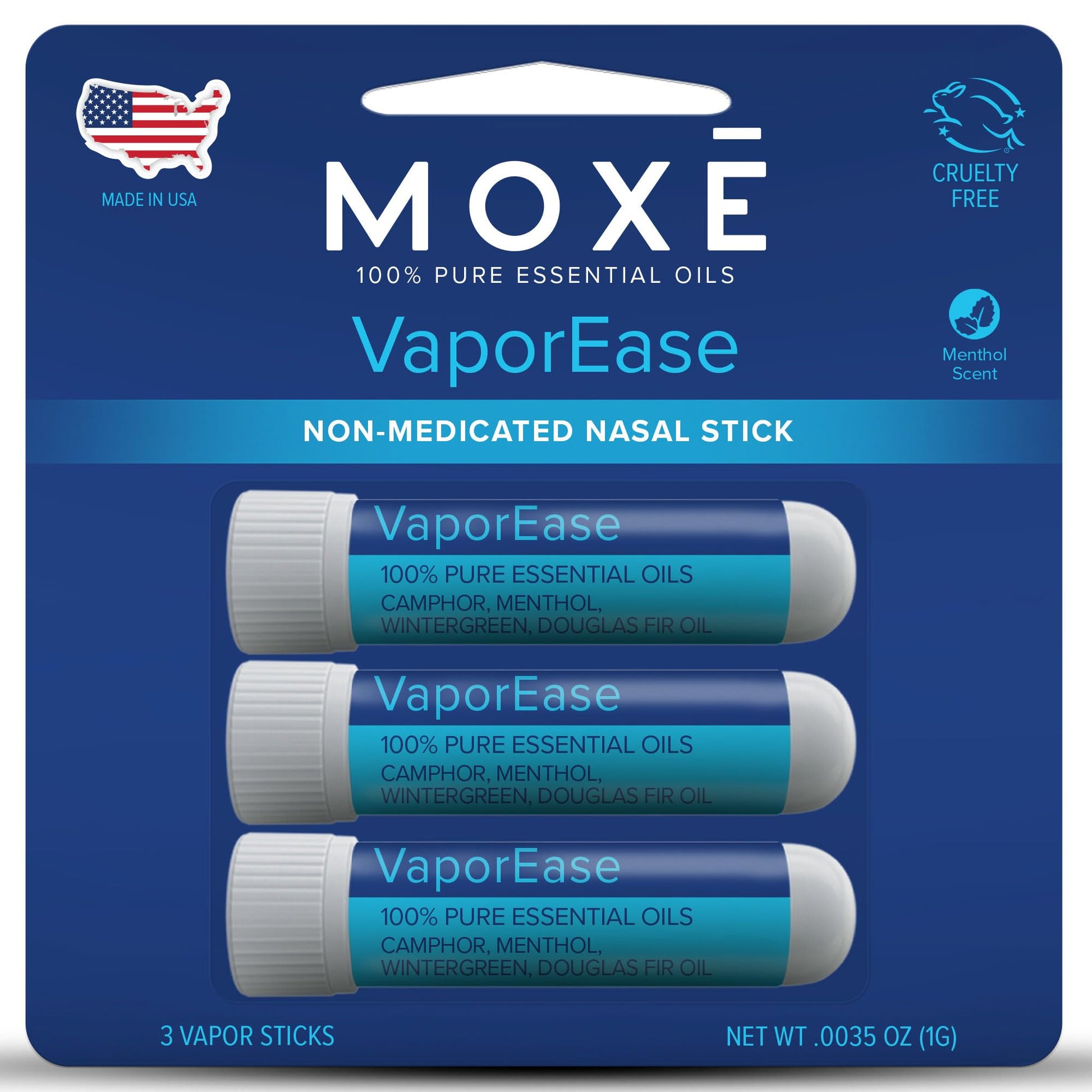 MOXE VaporEase, Portable Nasal Inhaler On-The-Go, Non-Medicated, Made in USA, Soothing and Refreshing Vapors, Menthol Scent, 3 Pack