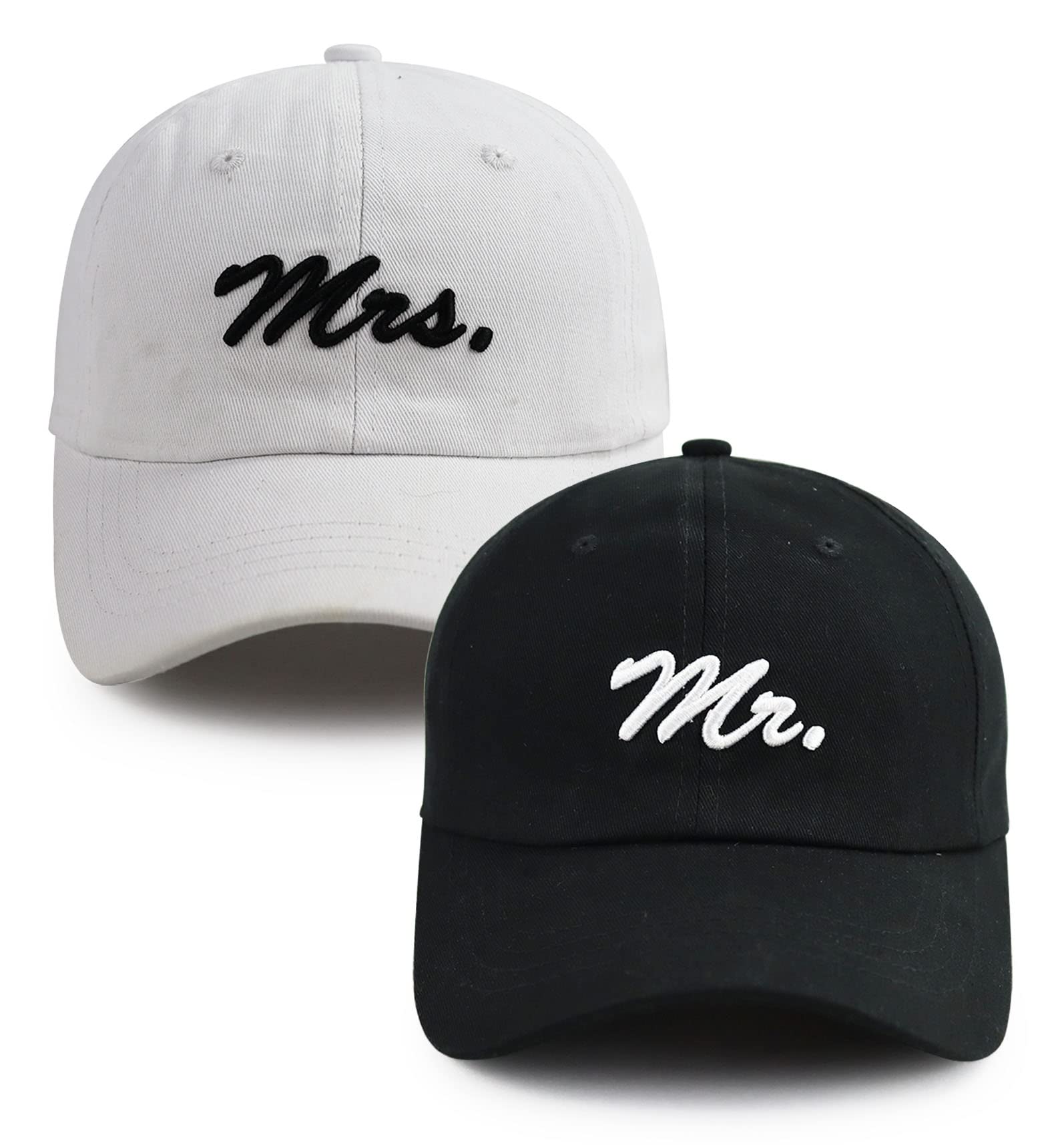 - Premium Material: This is a Set of Caps, Our Couple Gifts Baseball Hats Made of 100% High Quality Cotton, Lightweight, Comfortable, Breathable. The Honeymoon Baseball Caps Are Designed with Exquisite 3D Embroidery, One Black Groom Hat Embroidered with White Stitching " Mr." and Another White Bride Hat Embroidered with White Stitching "Mrs.". Perfect for Honeymoon Gifts, Engagement Gifts, Wedding Gift, Bride Gifts, Bachelor or Bachelorette Party, Bridal Shower Gift, Wedding After Party, Etc.