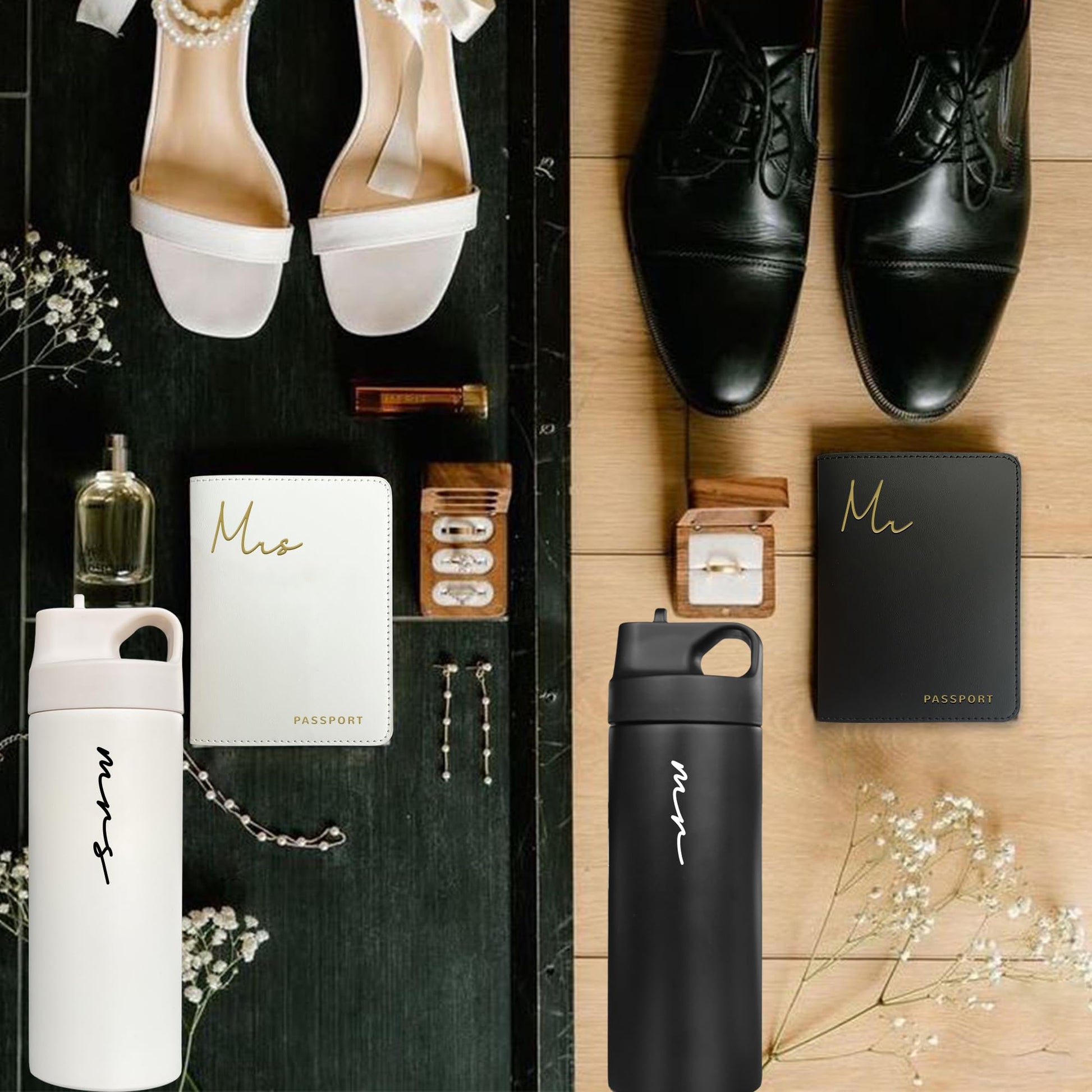 - đĄPremium Mr and Mrs Travel Mug - Hydrate more and refill less. Crafted with 304 stainless steel, BPA free, non-toxic. Double wall insulated water bottle makes drinks stay cold for 12 hours, stay hot for 6 hours.