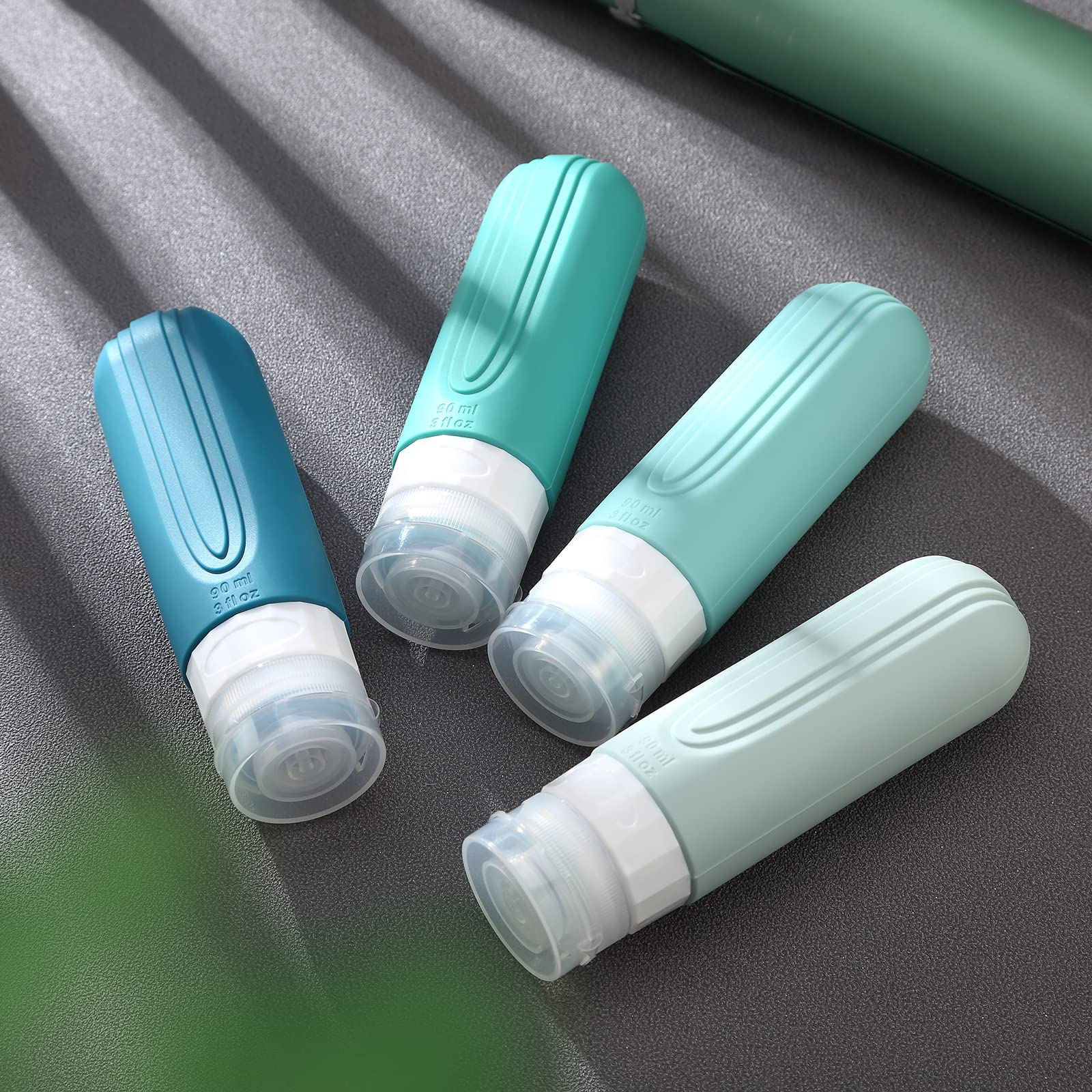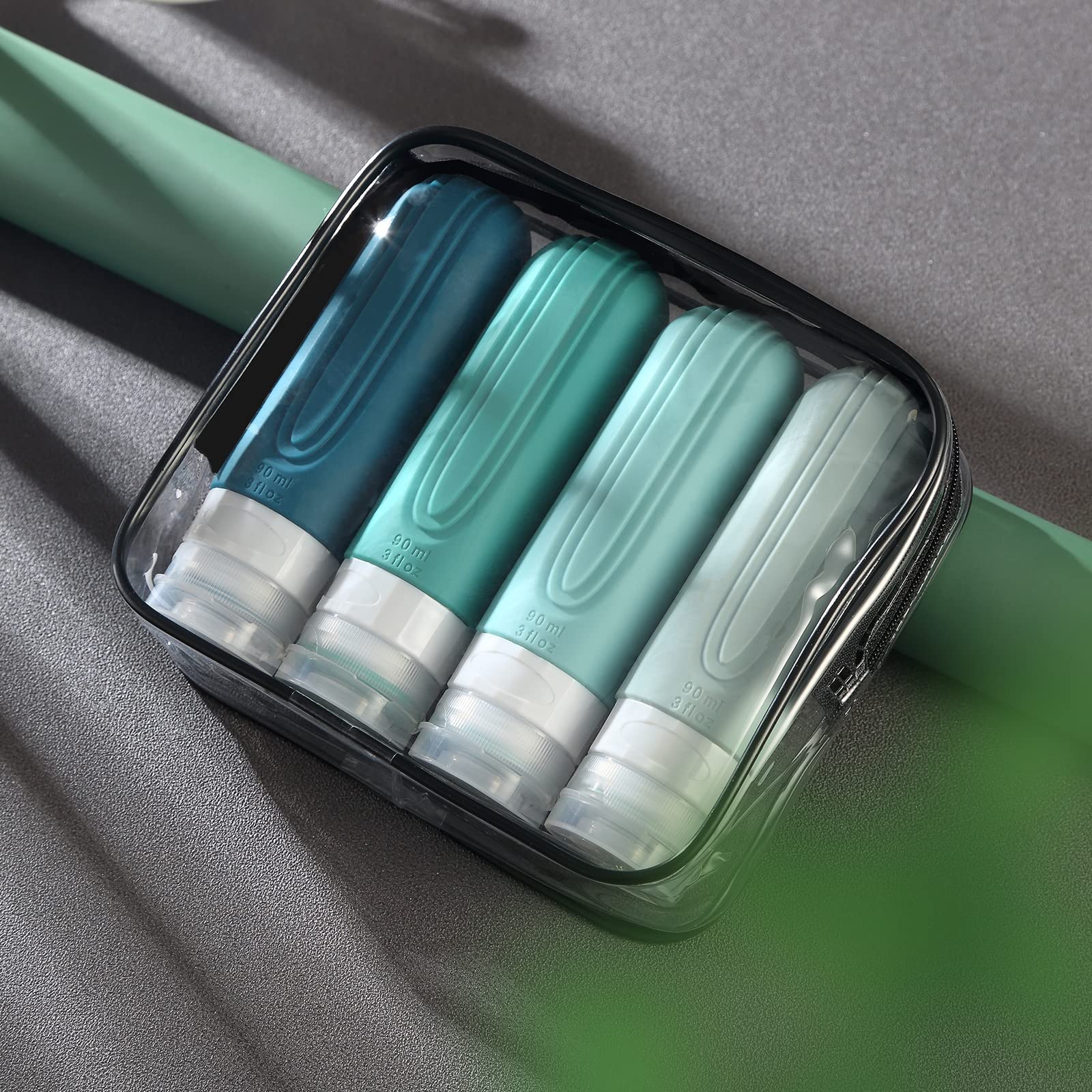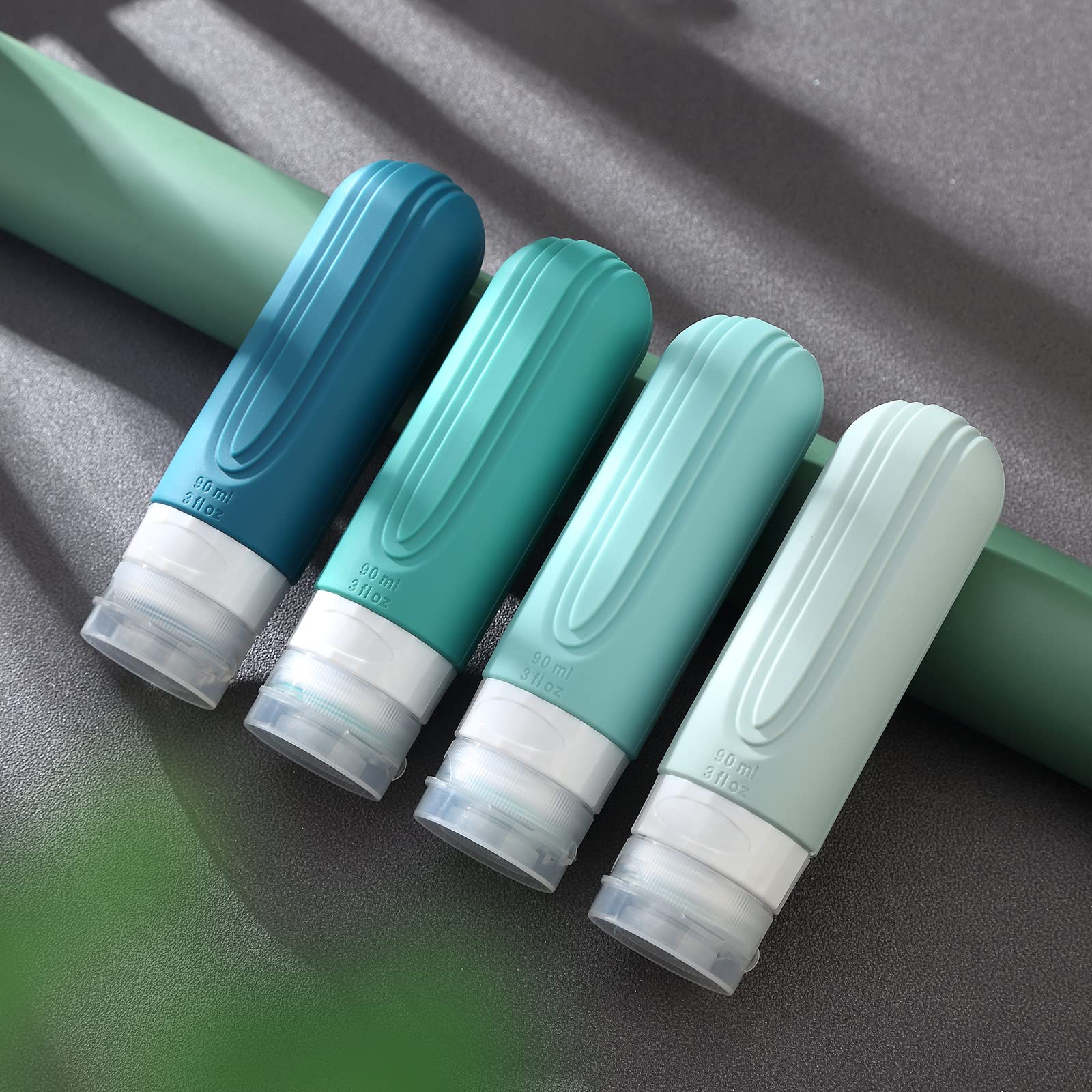 Mrsdry Travel Bottles for Toiletries, Tsa Approved 3oz Travel Size Containers BPA Free Leak Proof Refillable Liquid Silicone Squeezable Travel Accessories for Shampoo Conditioner Lotion (4 Pack)