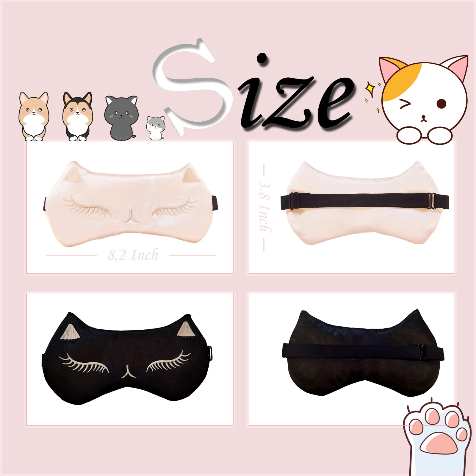- Adjustable design: The funny cat sleeping masks measure approx.8.2 x 3.8 inches, the proper size and elastic design make them suitable for most women, men and kids. The adjustable elastic band is convenient to fit your eyes and will not entangle the hair or the pillow.