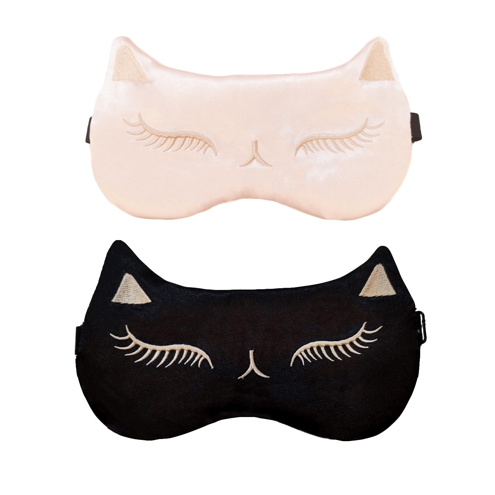 Mukveitn Cute Cat Sleep Mask for Kids, 2 Pack Silk Sleeping Eye Cover Adjustable Mask Night Eyeshade Cover for Girls Boys Women Men Sleep Travel Nap Party Supplies