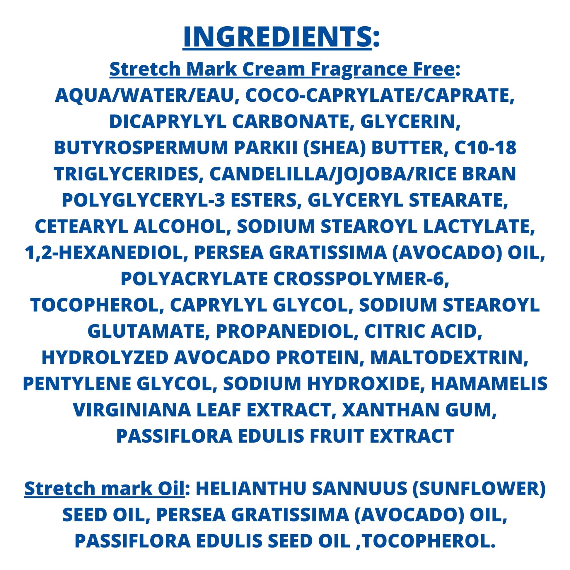 Mustela’s Stretch Marks Set includes two luxurious skin-nourishing products to help minimize the appearance of stretch marks during pregnancy and postpartum. Rich Stretch Marks Cream Mustela’s Stretch Marks Cream is formulated with 97% naturally derived ingredients, including Avocado peptides and Shea Butter to moisturize and nourish your skin and Maracuja polyphenols to keep your skin soft and supple. Our rich Stretch Marks Cream feels amazing going on and delivers soothing hydration to reduce the appearance of stretch marks during pregnancy.
