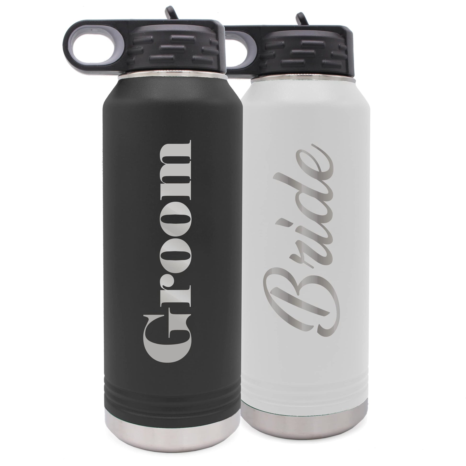 My Personal Memories Bride and Groom Insulated Travel Tumbler Set of 2 - Engraved To Go Cup Gift for Wedding, Rehearsal Dinner Party, Honeymoon, Reception (32 oz Water Bottle Tumbler Set)