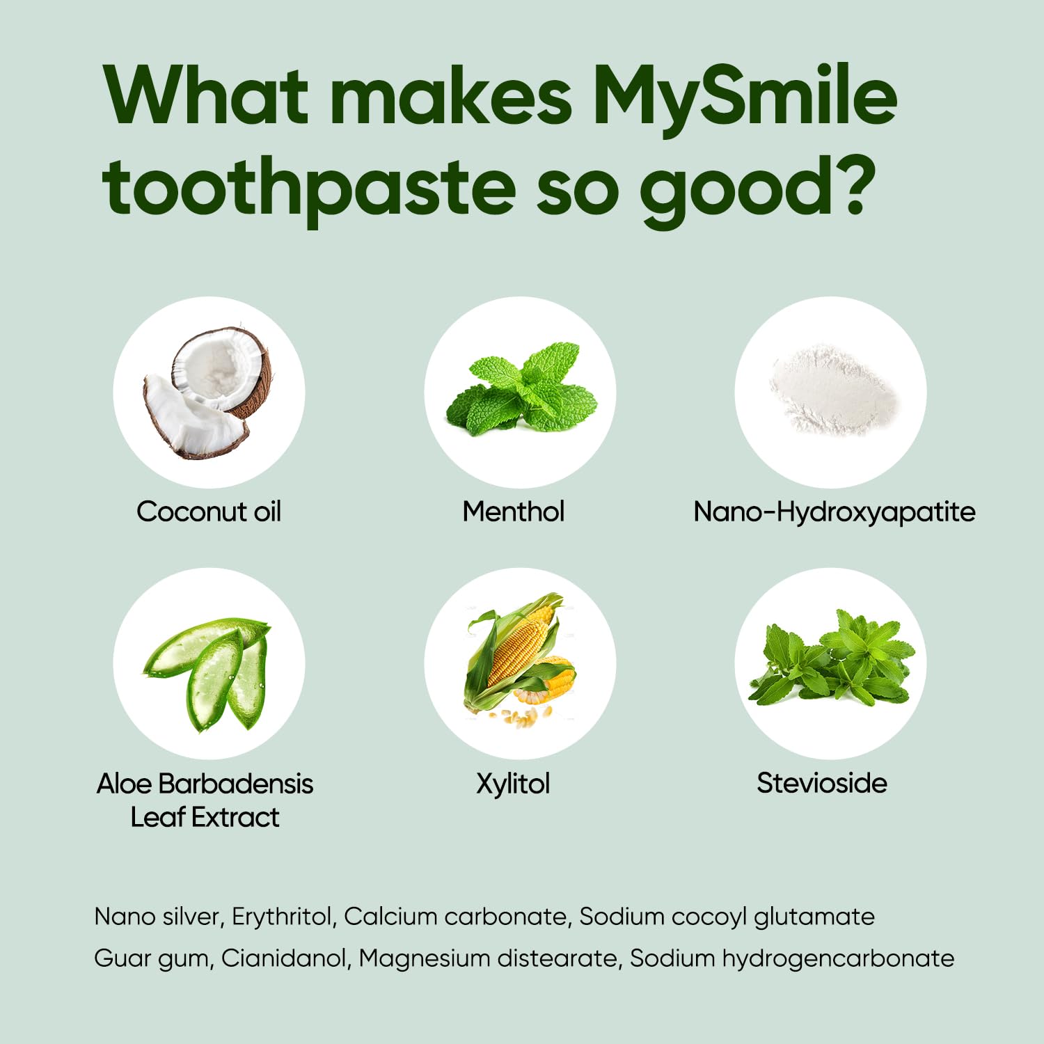 MySmile Toothpaste Tablets, Travel Friendly Mouthwash Tablets, Fluoride Free Toothpaste Tablets - Nano hydroxyapatite, Reduce Sensitivity, Natural Whitening, Remineralize Teeth, Fresh Breath. 45Tabs