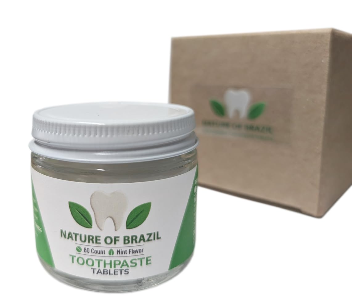 Nature of Brazil Toothpaste Tablets – Mint Flavor – 60 Count – Fluoride-Free, SLS-Free, Natural Whitening, Travel-Friendly – Made in USA