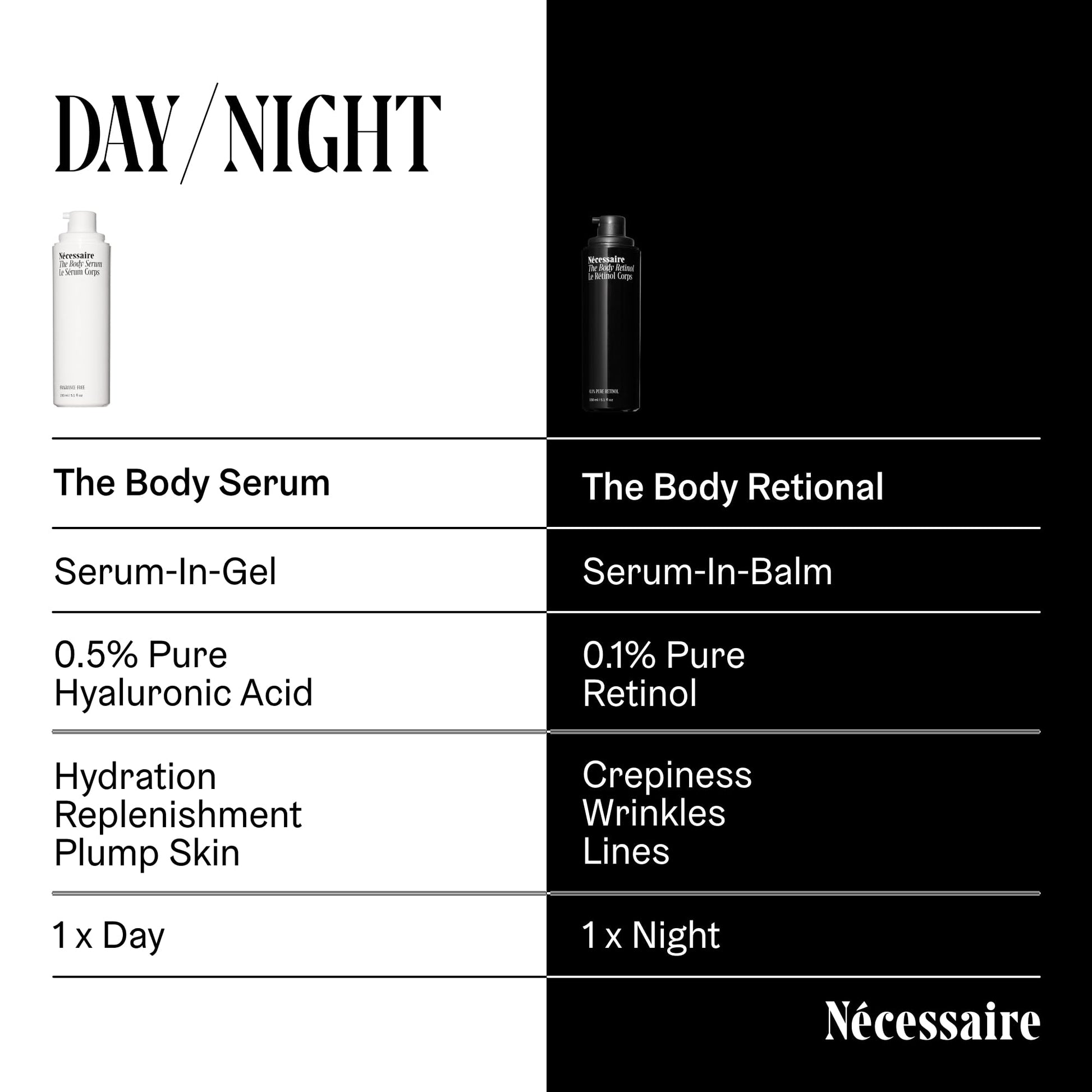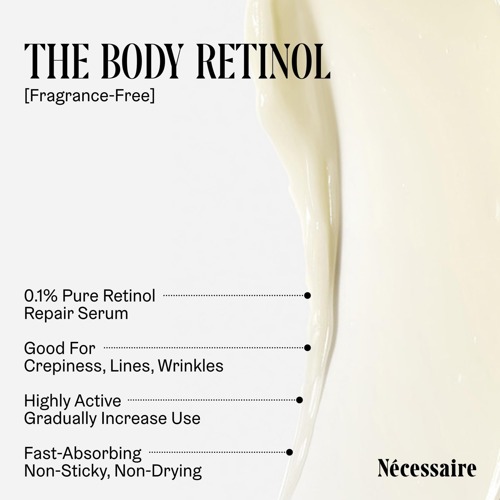 Nécessaire The Body Retinol - Firming Repair Serum + Retinol Body Lotion For Women & Men. Wrinkle + Line Prevention. 0.1% Pure + 10% AHA Crepey Skin Treatment. 5.1 oz