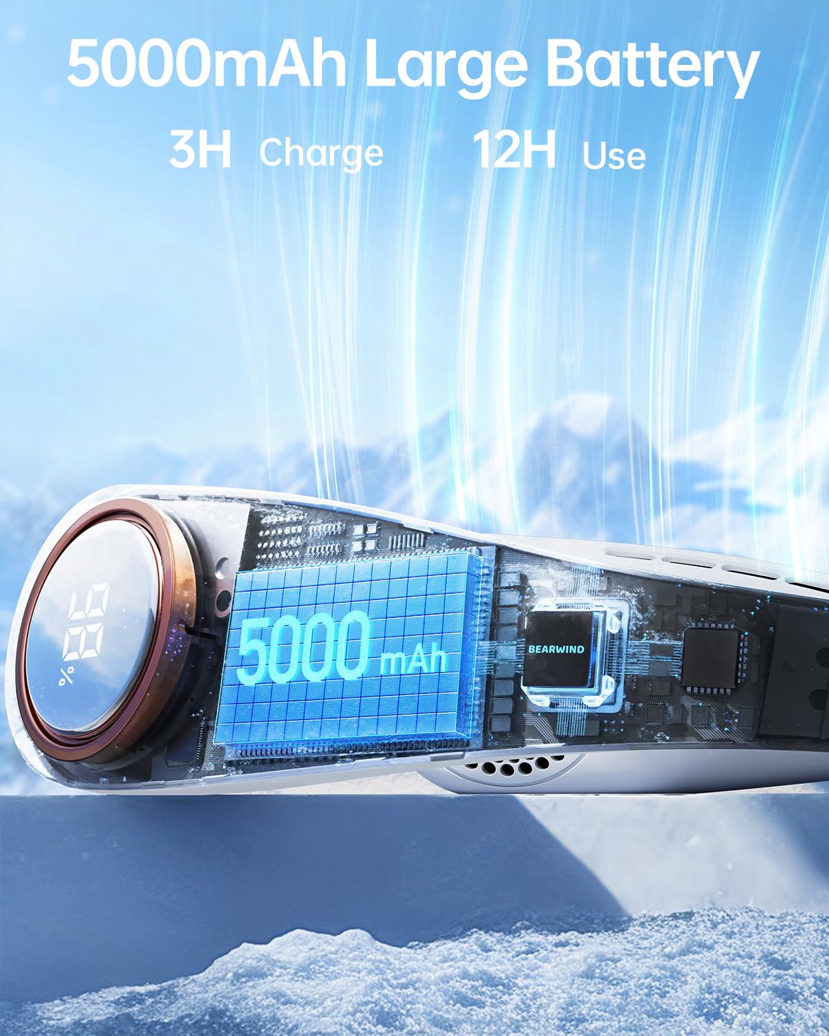 - Long-lasting 5000mAh Battery & Fast Charging: Enjoy up to 12 hours of cooling with a 5000mAh rechargeable battery. Type-C fast charging takes just 3 hours