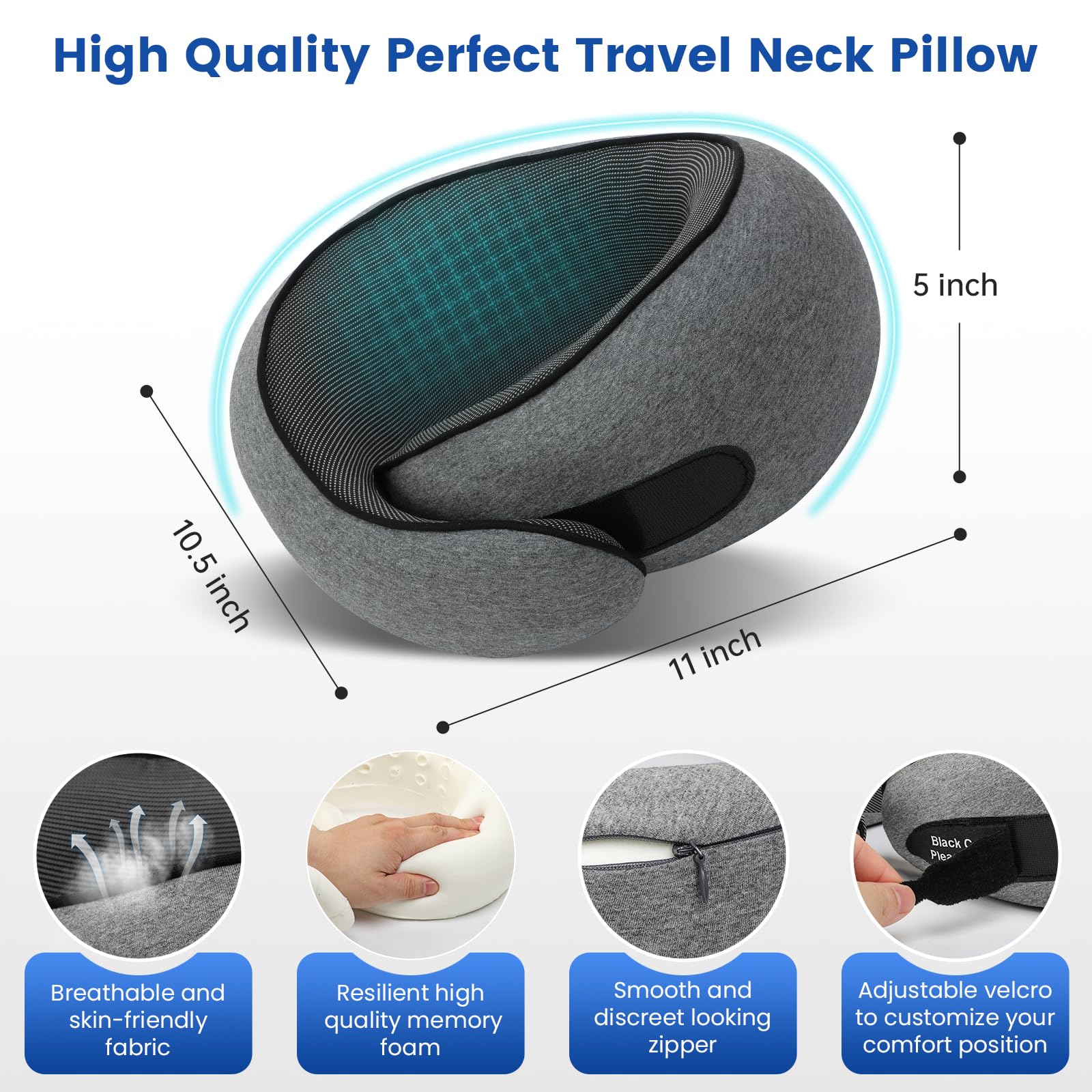 Neck Pillow for Airplane Travel Memory Foam Neck Travel Pillow with Eye Mask & Ear Plugs, Portable Carry Bag for The Comfort of Travel & Office, Travel Pillow for Plane, Car, Home, Work, Dark Grey
