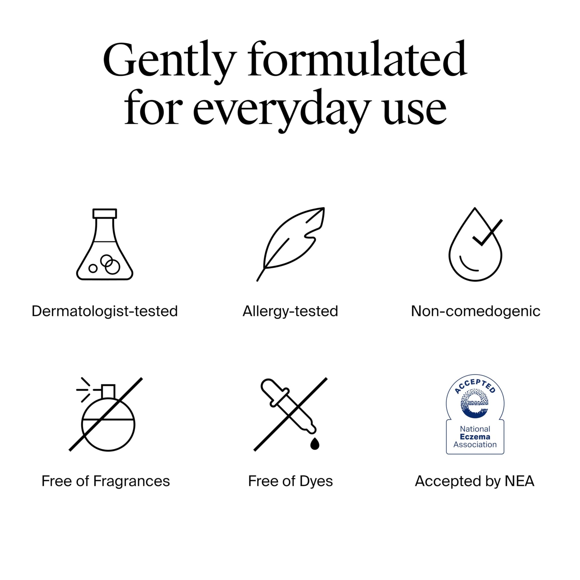 - Facial cleanser: Trial size hydrating gel facial cleanser transforms into a silky foaming lather to remove makeup, dirt, oil, and impurities; fragrance free, non-comedogenic, and suitable for sensitive or acne-prone skin.