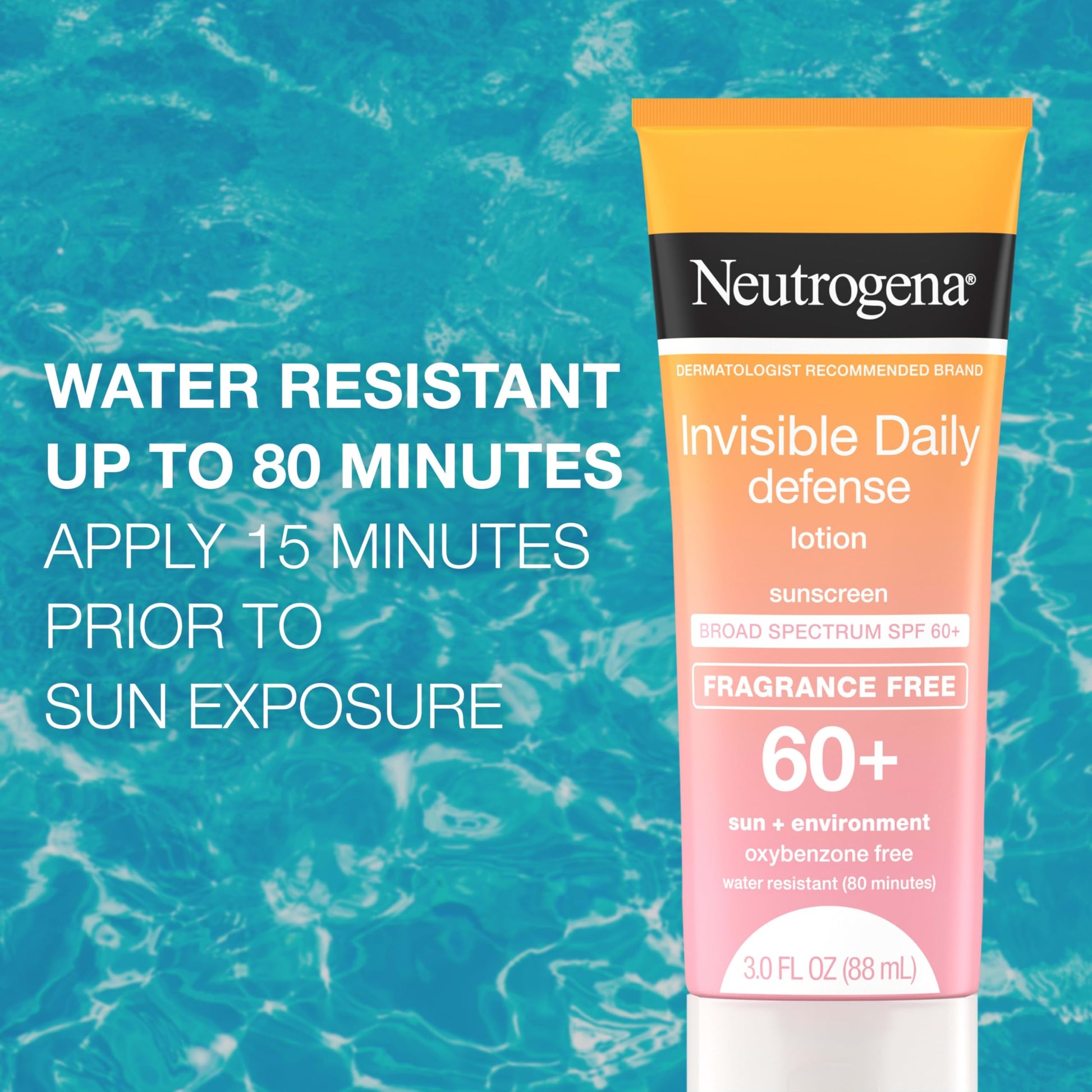 Neutrogena Invisible Daily Defense Fragrance-Free Sunscreen Lotion, Broad Spectrum SPF 60+, Oxybenzone-Free & Water-Resistant, Sun & Environmental Aggressor Protection, 3.0 fl. oz