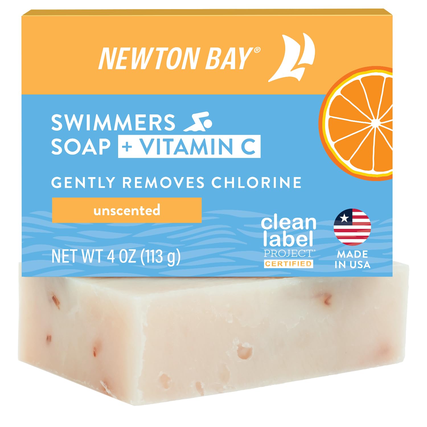 - ENHANCED NATURAL FORMULA: Newton Bay Swimmers Soap + Vitamin C is an enhanced version of Newton Bay's original chlorine removal soap. Formulated to overcome stubborn chlorine damage, Swimmers Soap + Vitamin C includes the same, short list of high quality, all-natural, vegan ingredients as Newton Bay's original Swimmers Soap plus the chlorine neutralizing power of vitamin C. Swimmers Soap does not contain any sulfates, parabens, phthalates, or added fragrance. Our RSPO-certified palm oil is sustainably produced, wildlife friendly and fully traceable.