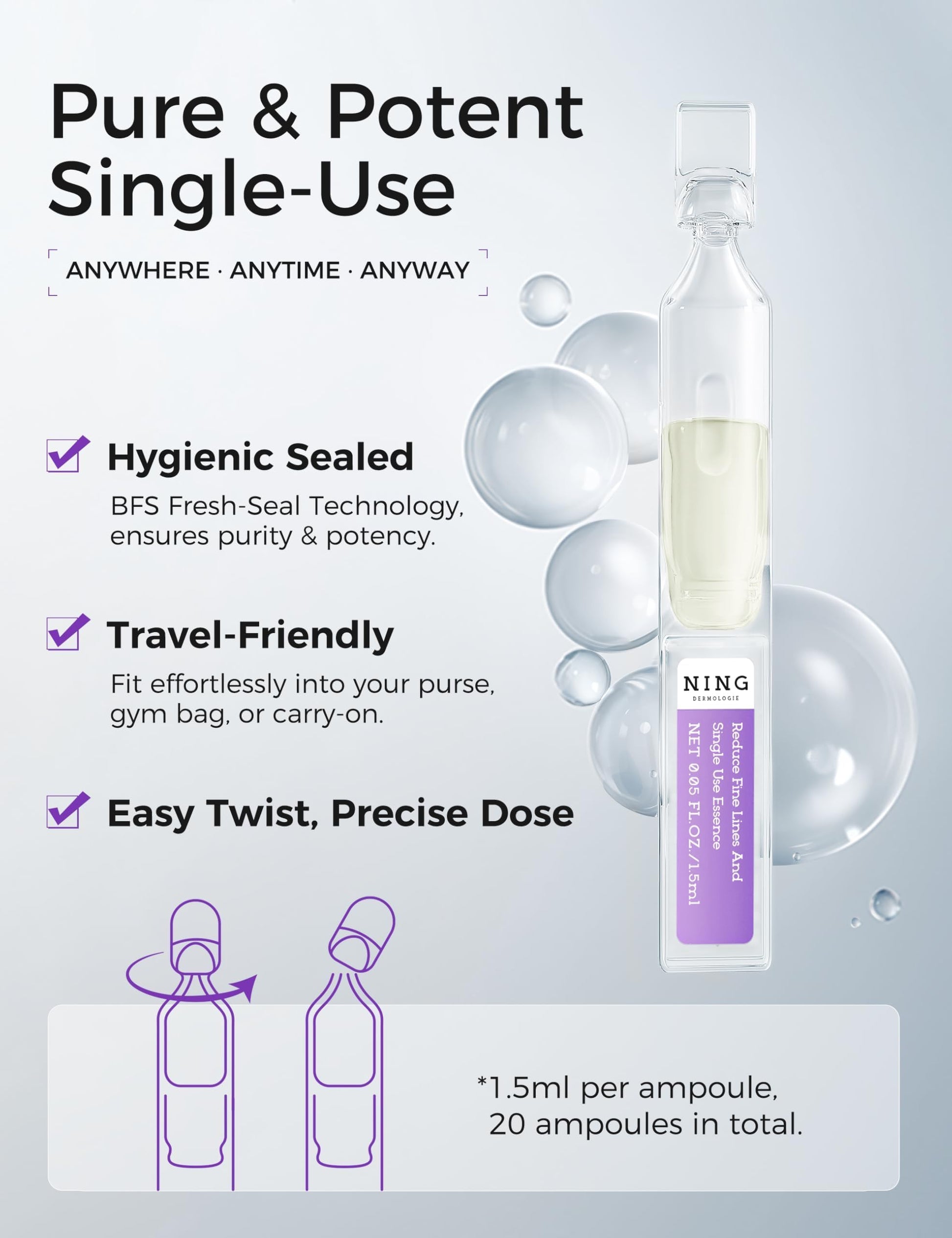 NING DERMOLOGIE Peptides Serum for Face with Retinol, Niacinamide, Panthenol, VC-IP - Anti-Aging Ampoules for Wrinkles Dark Spot&Reduce Fine Line - Single-Use Vials|Korean Skin Care 0.05 fl.oz x 20ex