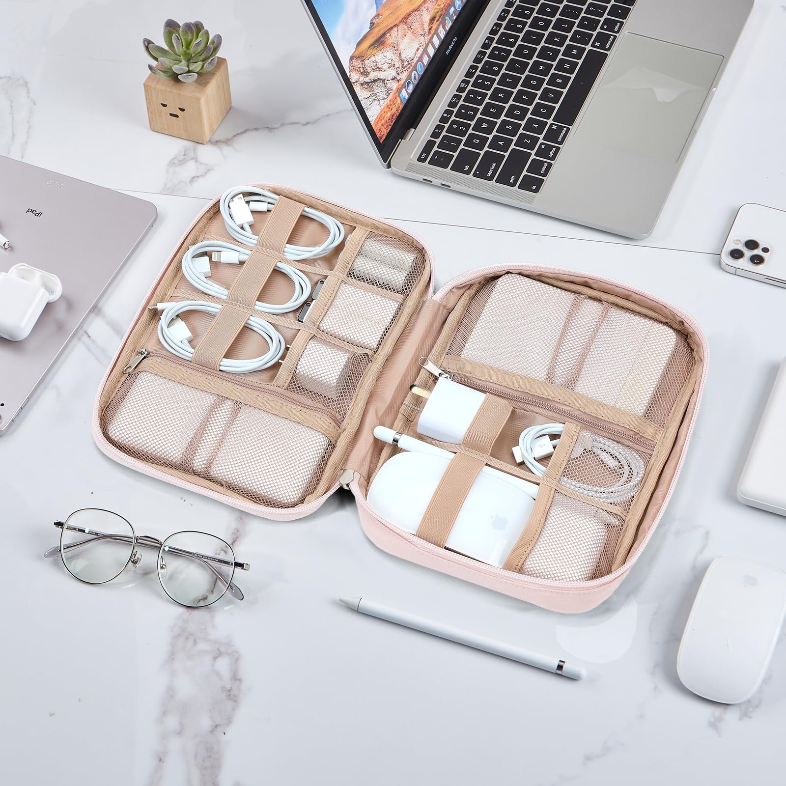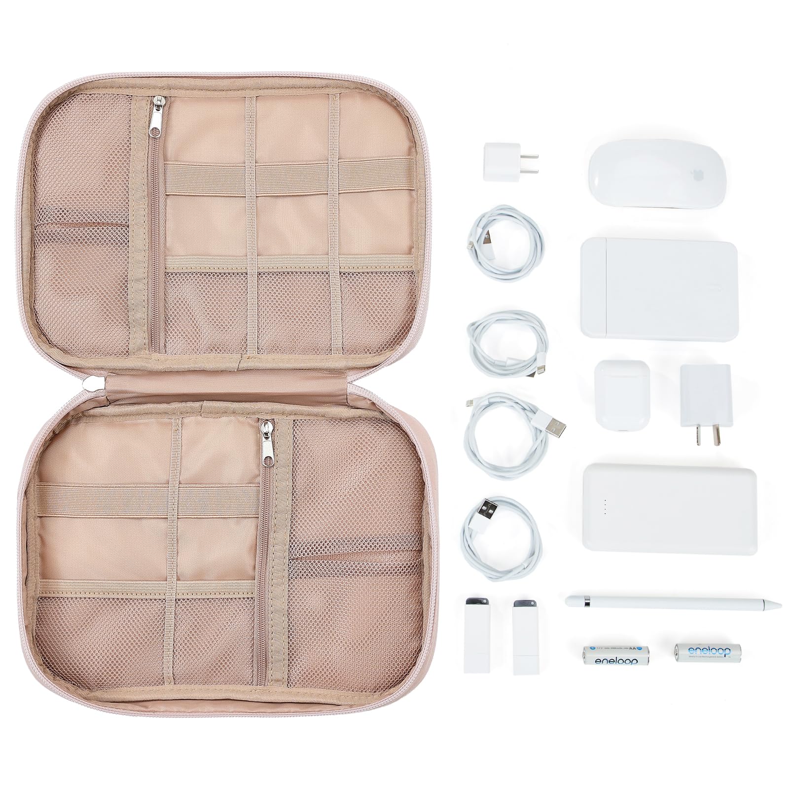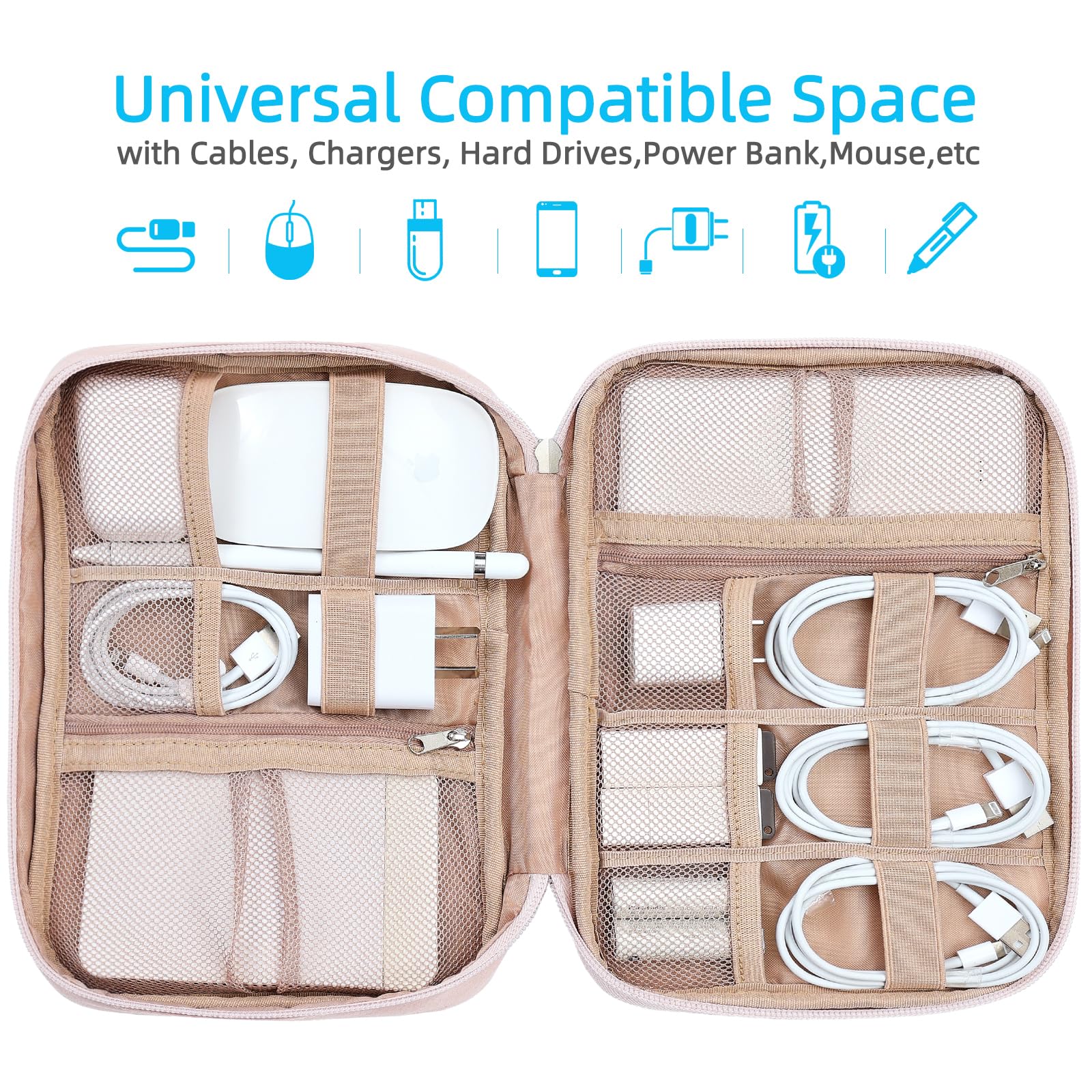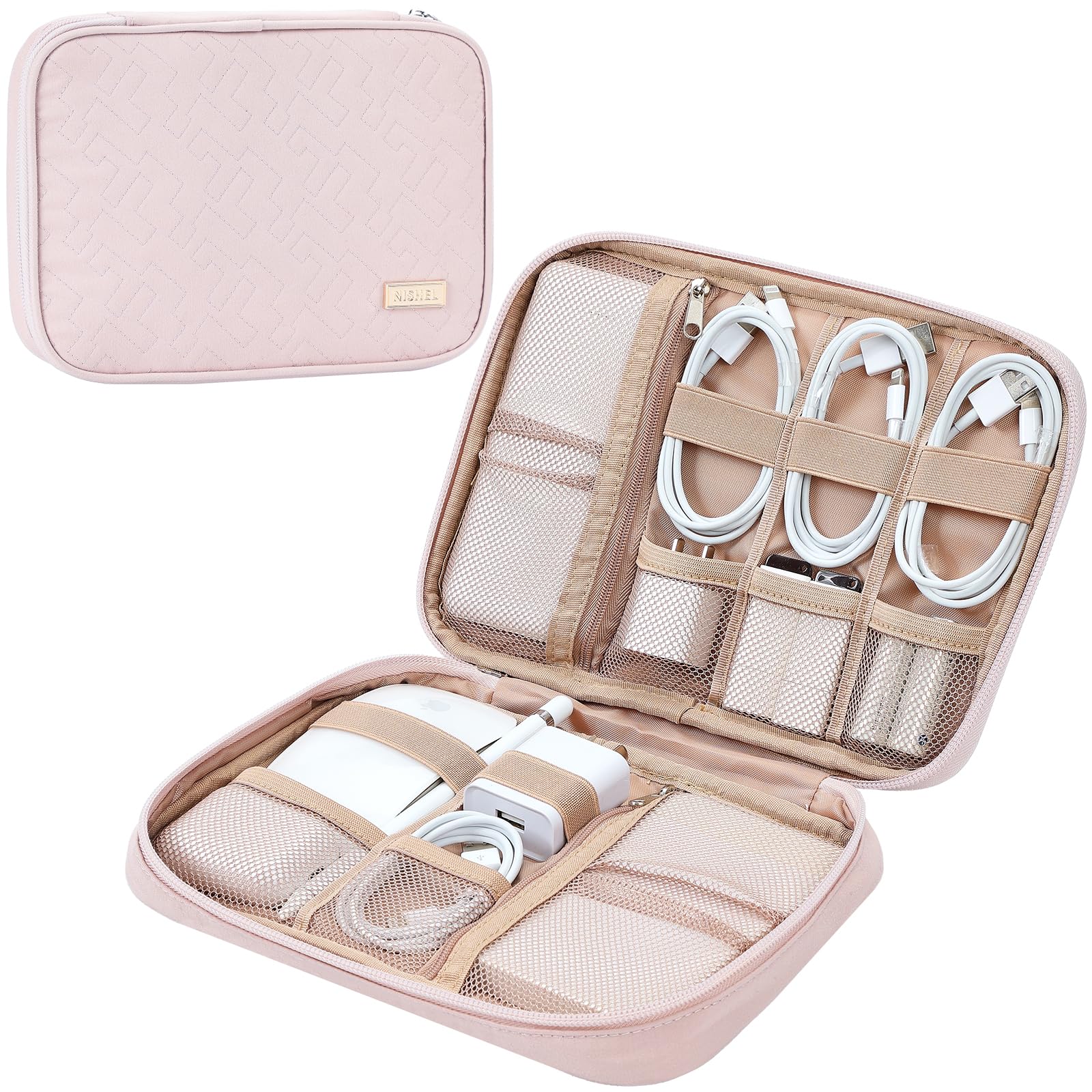 NISHEL Travel Cord Organizer Case, Tech Electronic Bag, Essentials for Charger, Cable, Phone, Hard Drive, USB, SD Card, Pink
