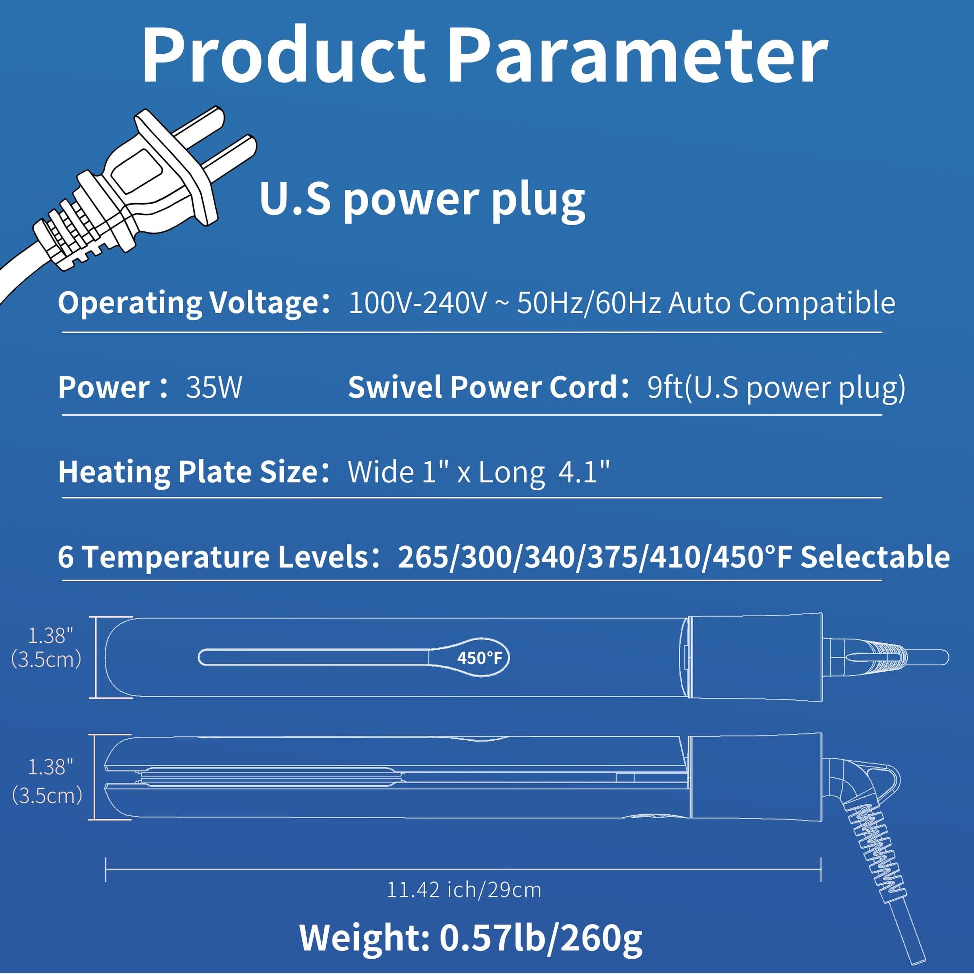 - Support LCD 6 Specific Temperature Levels Selectable: 265°F/300°F/340°F/375°F/410°F/450°F. (NO OTHER TEMPERATURES). Recommend Setting: 265°F or 300°F for Delicate, Thin Hair; 345°F or 370°F for Normal Hair; 410°F for Thick, 450°F for Thick Coarse Hair. Please choose the appropriate temperature based on your hair type. TIPS: If above particular temperature settings doesn't deliver the desired results, please first try using a nearby temperature level.