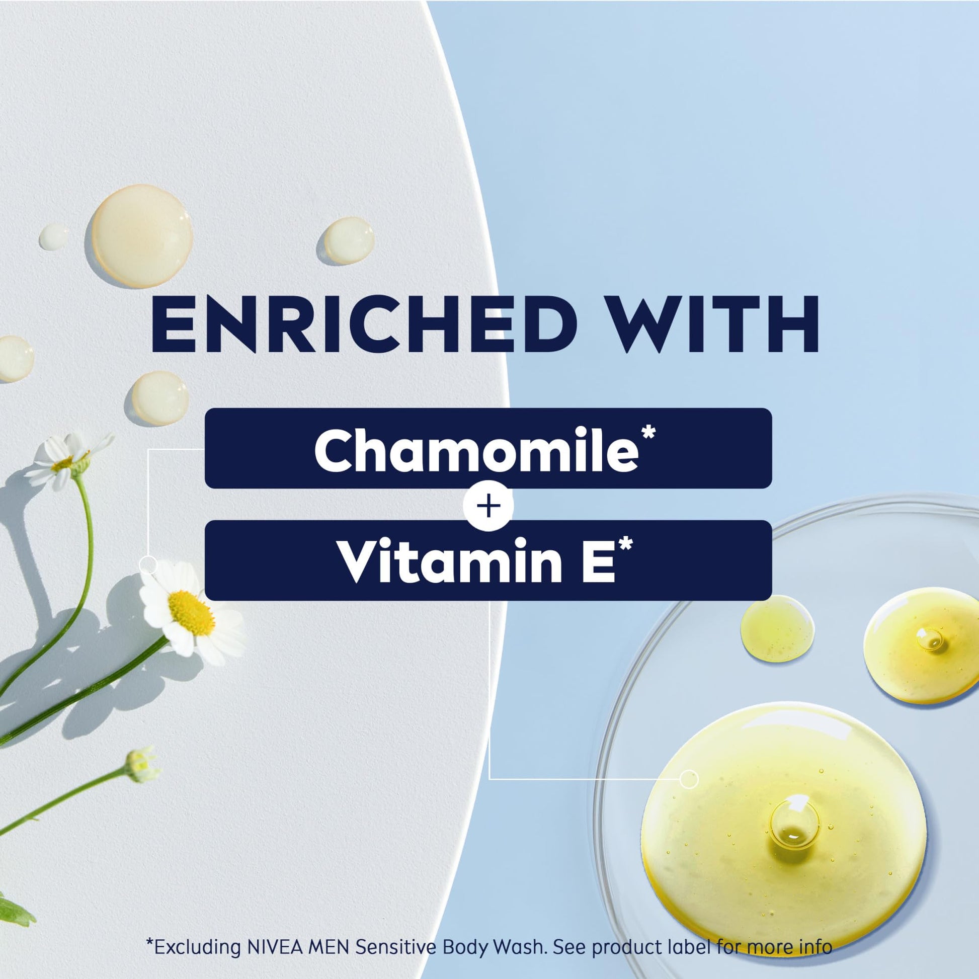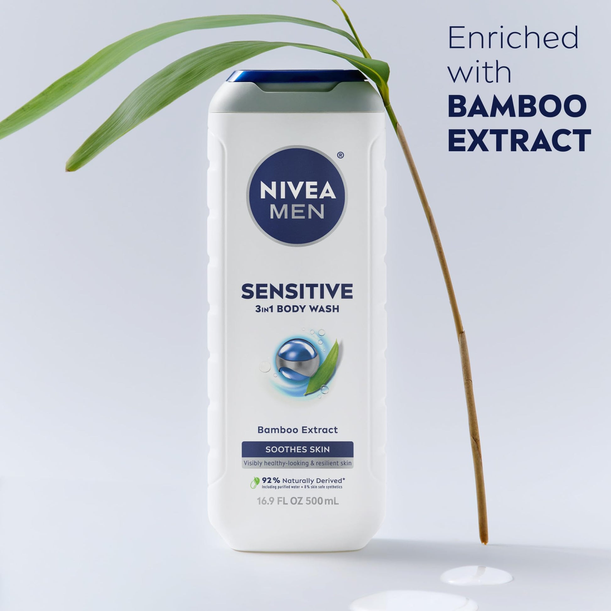 Details: Cleanse, shave, soothe and moisturize with the everyday essentials in this NIVEA MEN Sensitive Skin Care Set. Formulated specifically for men with sensitive skin, this mens skin care kit helps you with a complete skincare regimen. Start by thoroughly cleansing your body with NIVEA MEN Sensitive Body Wash — enriched with soothing Bamboo Extract and Almond Oil for a formula that gently cleanses while providing nourishing moisture. Follow with NIVEA MEN Sensitive Face Wash to gently remove impurities, dirt and excess oils for visibly healthy-looking skin. Plus, it softens beard hair for a comfortable shave. NIVEA MEN Sensitive Shave Gel improves razor glide to help protect against nicks and cuts. After shaving, apply NIVEA MEN Sensitive Soothing Post Shave Balm liberally on shaved skin. This aftershave balm for men offers long-lasting, soothing hydration and absorbs quickly into the skin without any greasy feel. Finish your daily men's grooming routine with NIVEA MEN Sensitive Face Lotion SPF 15 to moisturize skin and help protect it from harmful UVA and UVB rays. Each product is dermatologically tested and free from drying alcohols, dyes and parabens. NIVEA is a trusted leader in skin care products with more than 130 years of skincare expertise.