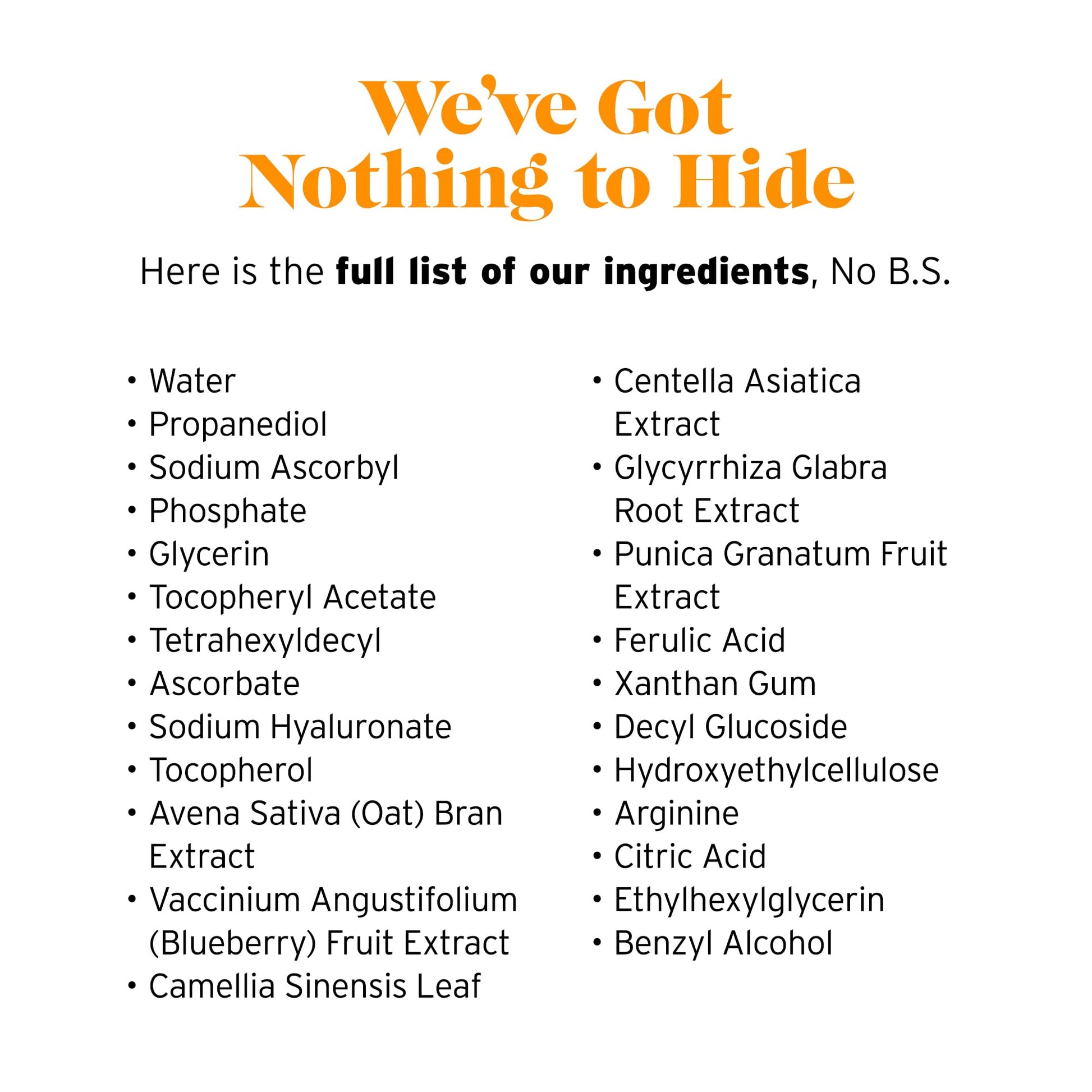 - DEFEND AGAINST PREMATURE AGING: Safeguard your skin from aging free radicals! Our serum is enriched with potent antioxidants, including Pomegranate and Green Tea, known to help maintain youthful skin. Experience the benefits of ingredients that support your skin's natural defense against premature aging. Plus, it works seamlessly under makeup, providing a smooth base for your daily routine.