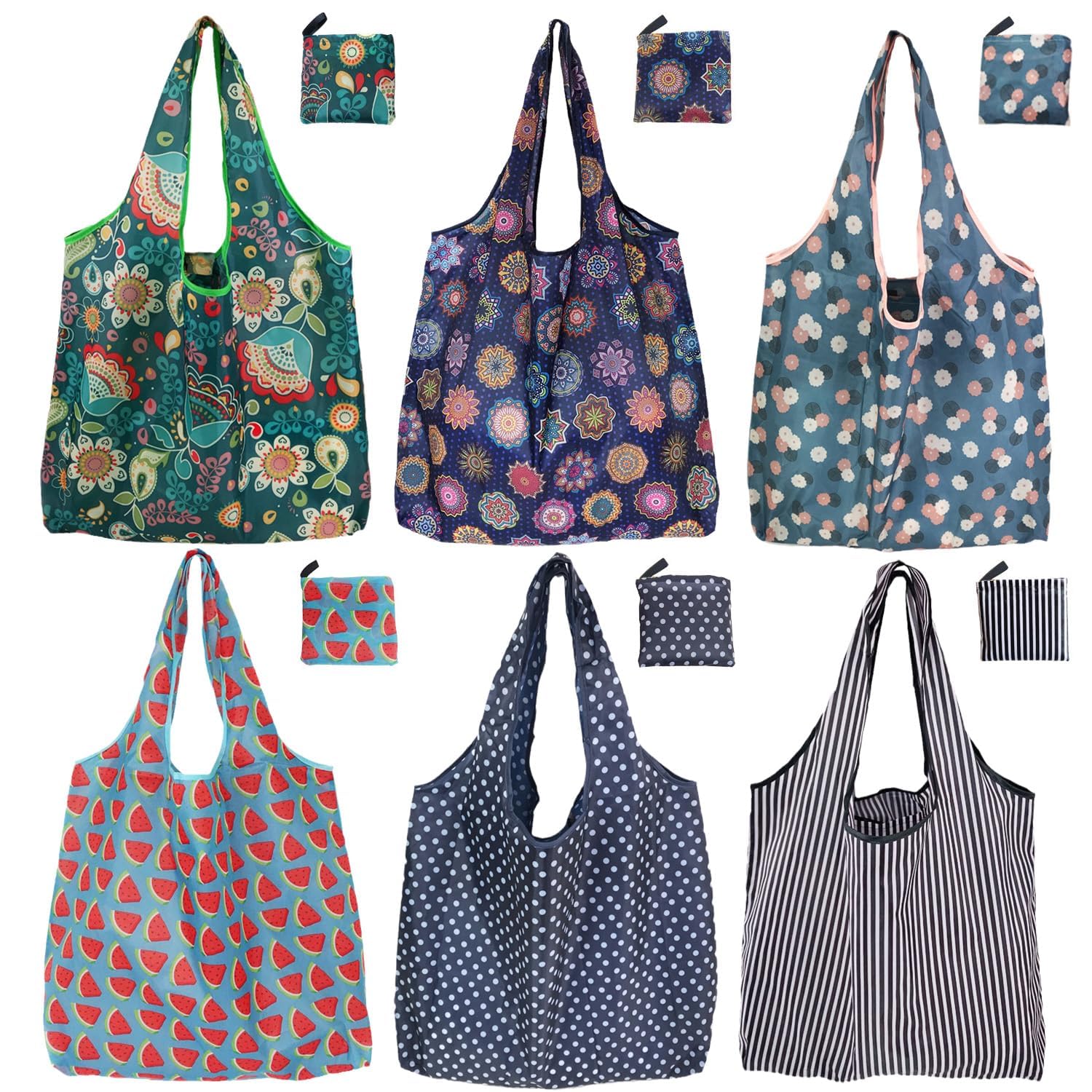 - 2. Easy to Fold & Store: Our reusable grocery bags can be easily folded into the attached pocket-size pouch, so you can carry them in your purse or car without taking up too much space.