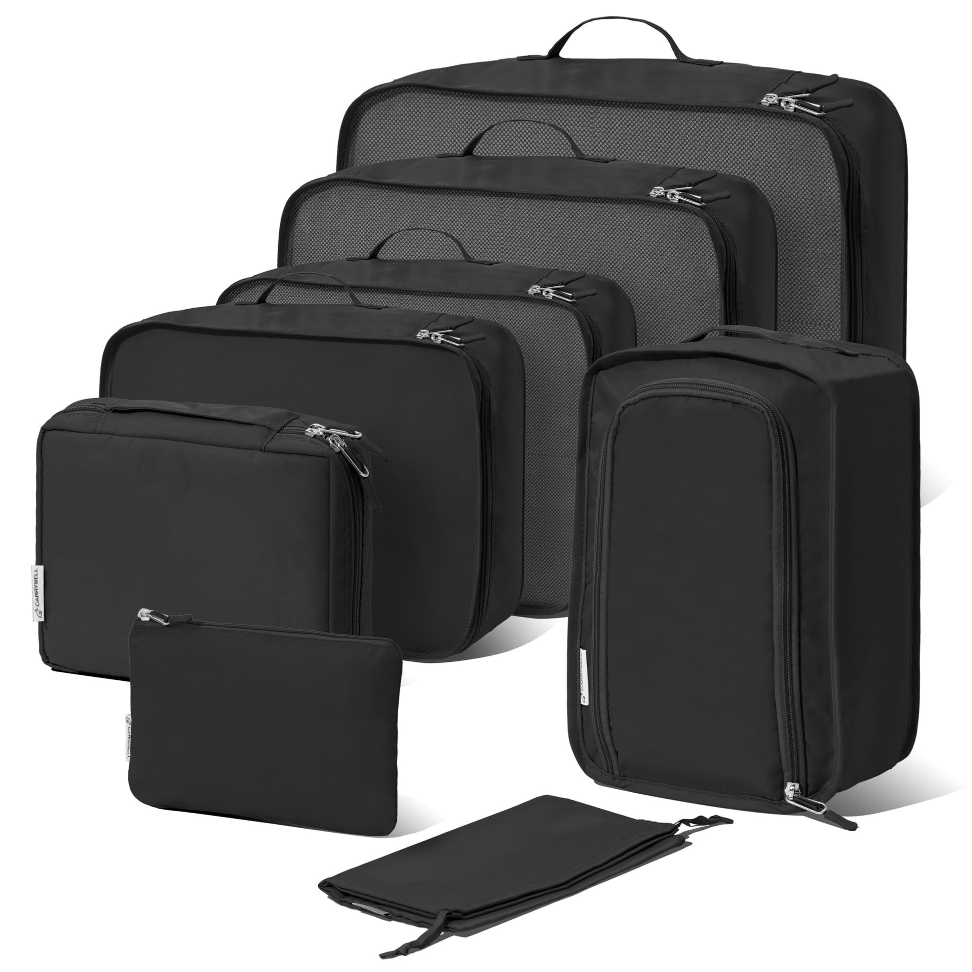 (Not Made In China) 8 Set Packing Cubes For Travel, Luggage and Suitcase Organizer Bags, Lightweight and Waterproof Nylon (Black)