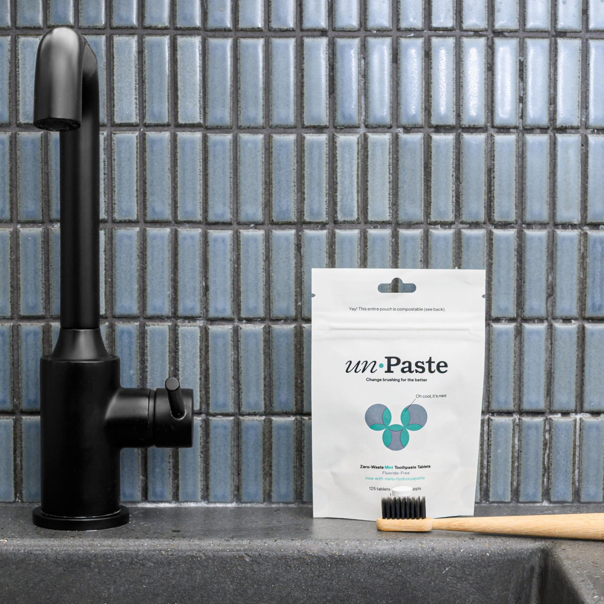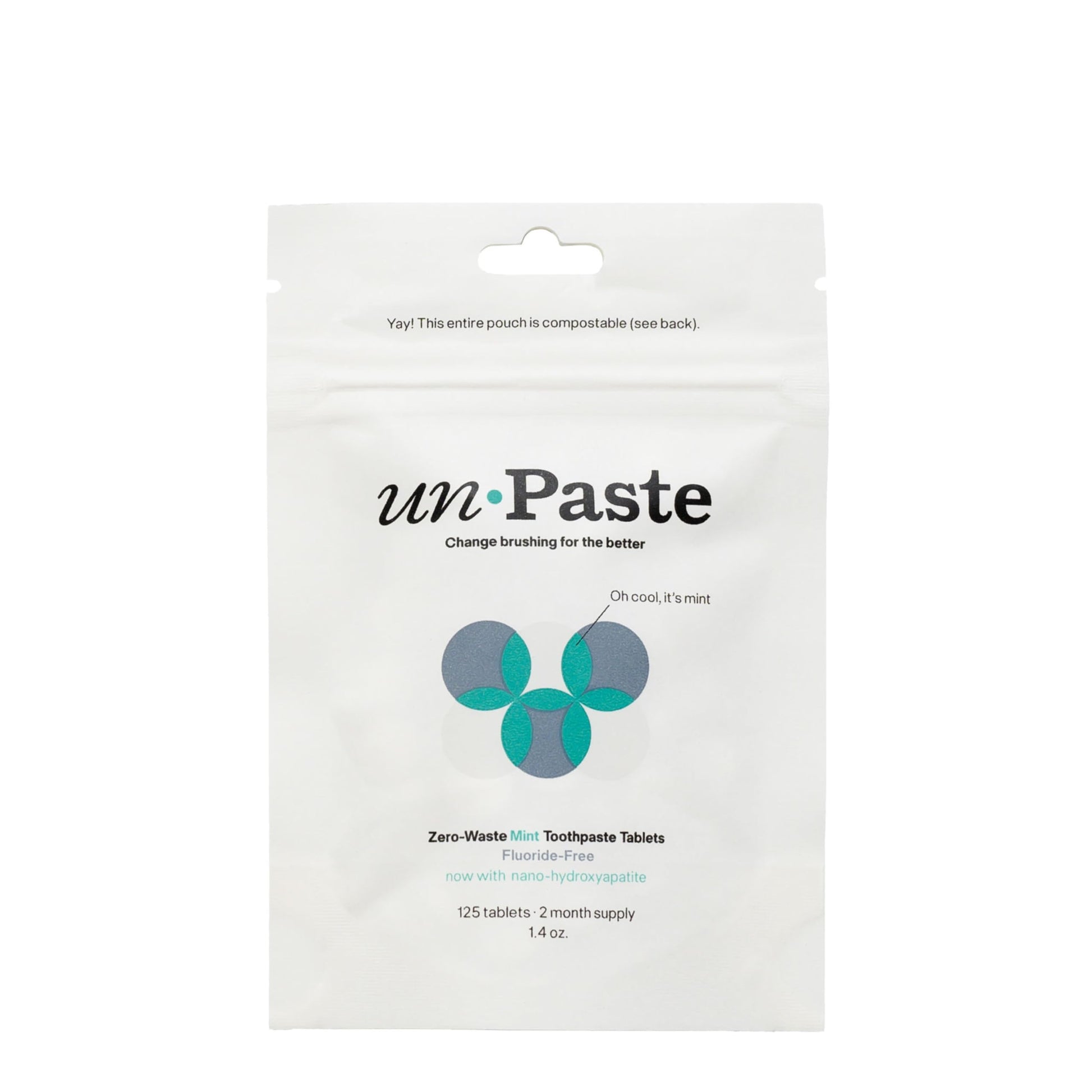 Now w/Nano-HYDROXYAPATITE, New Formula, Unpaste Toothpaste Tablets, Fluoride-Free Mint Remineralizing Tablet, Xylitol Free, Vegan, Plastic Free, Travel-Friendly, Resealable Packet, 125ct/2 mo Supply