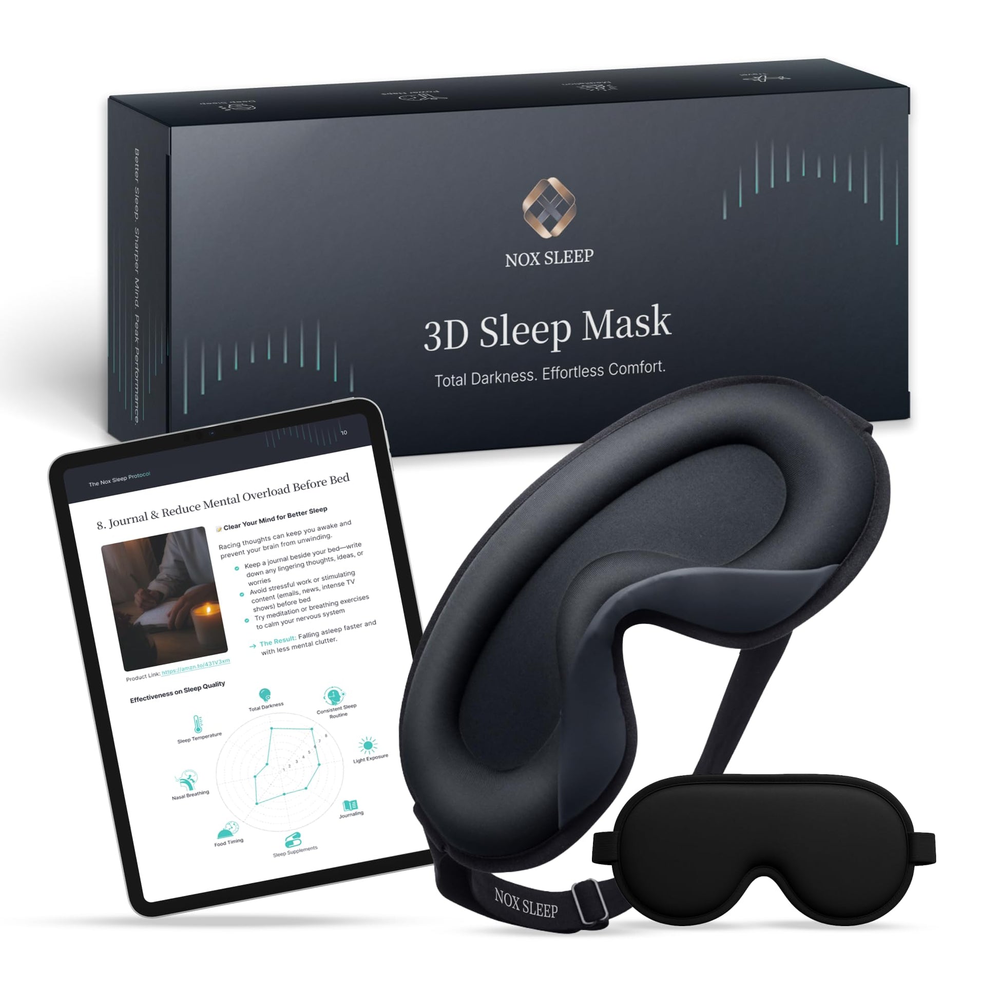 Nox Sleep 3D Sleep Mask for Men, 100% Light Blocking Eye Mask for Sleep, Ice Silk Adjustable Sleeping Mask for Side Sleepers, Soft Breathable Blindfold, Perfect Sleep Mask for Travel & Women (Black)