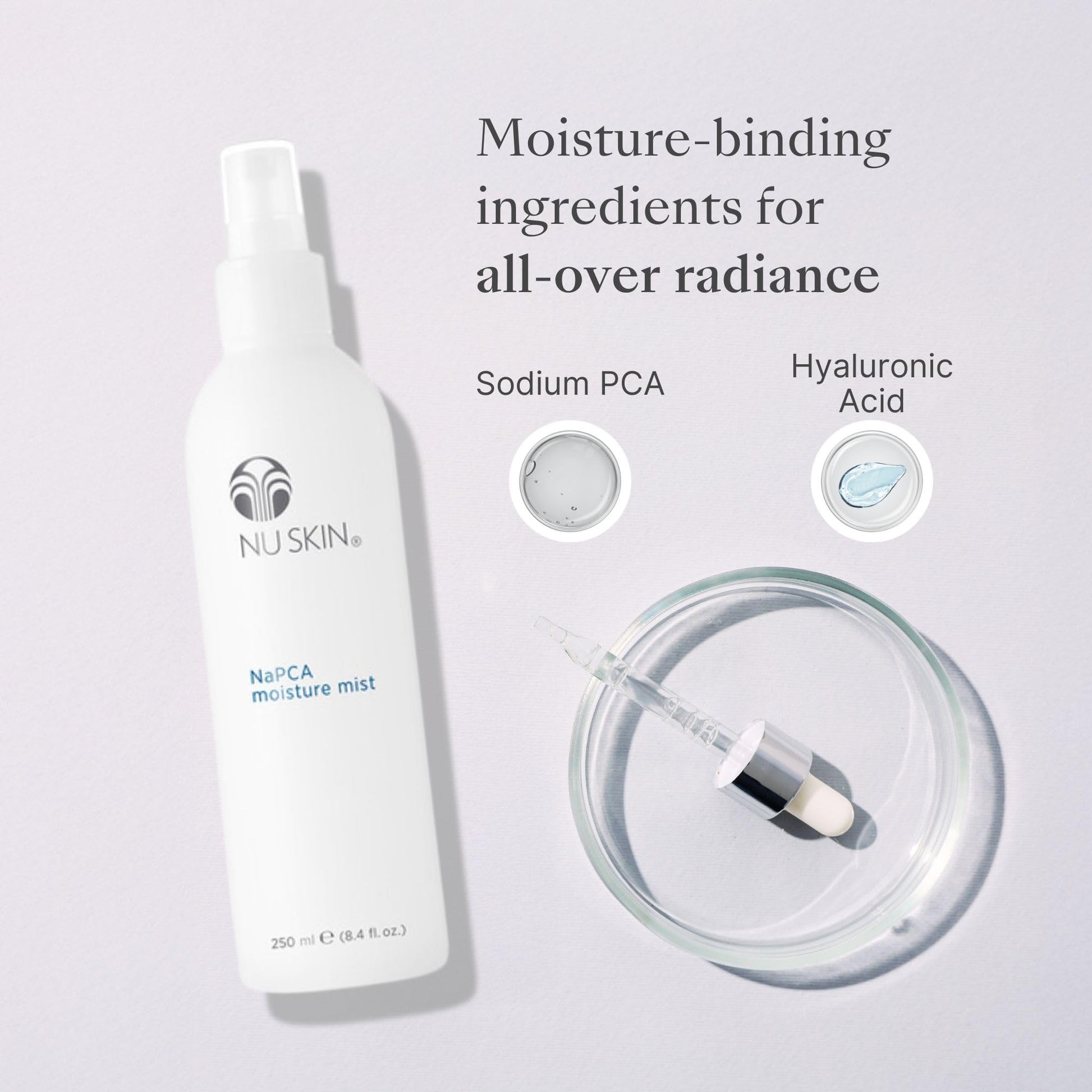 Nu Skin NaPCA Moisture Mist | Revitalizing Moisturizer & Cooling Mist with Hyaluronic Acid | Hydrating Spray for Face, Body & Hair | Sodium PCA for All Skin Types | 8 oz | 1 Pack