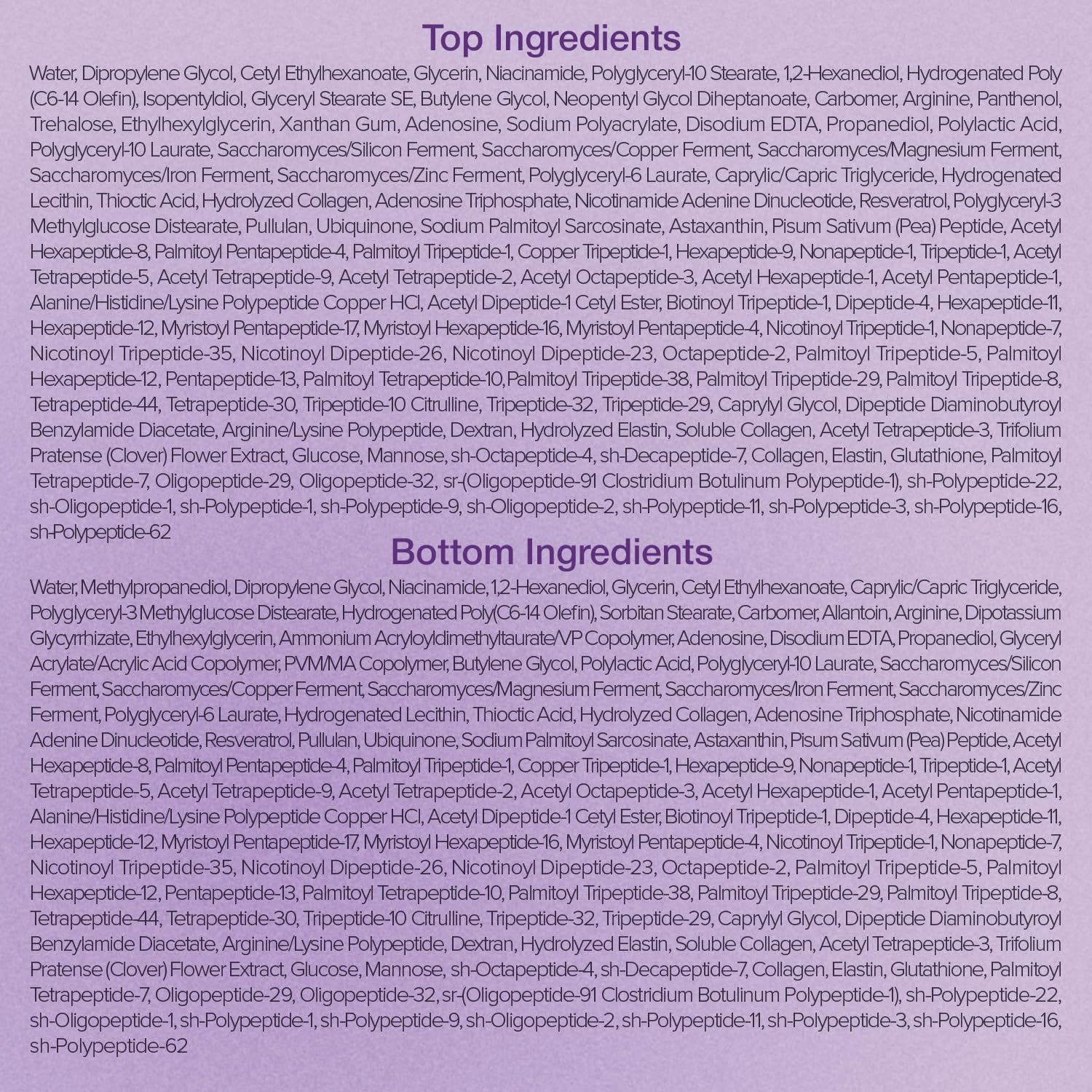 - [KEY INGREDIENTS] Formulated with NAD+, an anti-aging ingredient that boosts cell turnover, stimulates collagen production, and supports skin repair, along with 50 types of peptides to plump and firm the skin. Hydrolyzed collagen and adenosine are also added to effectively target wrinkles and enhance skin elasticity.