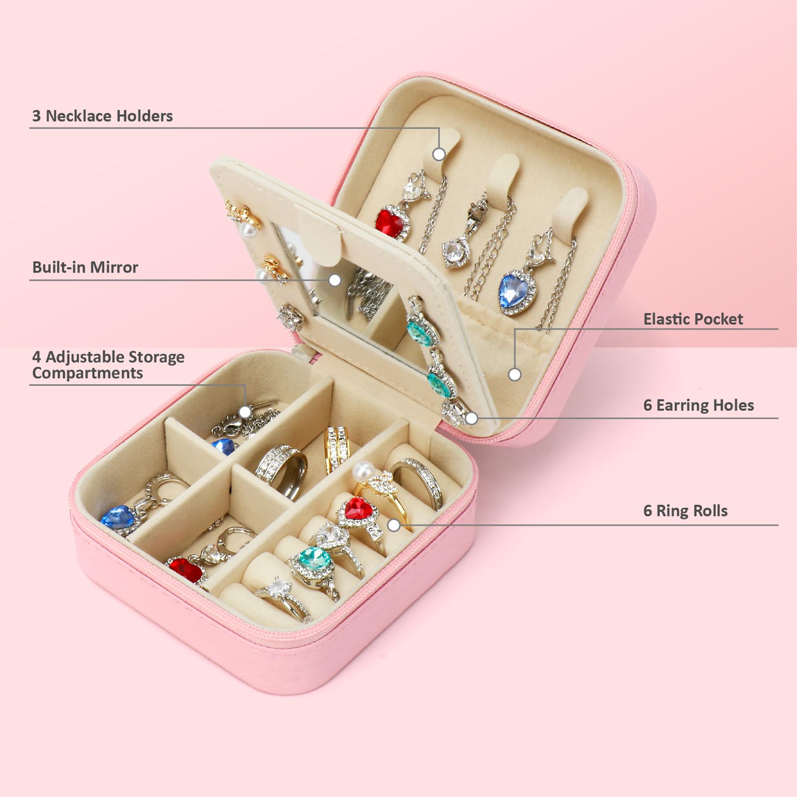 - 【Small Travel Jewelry Case】 The compact design is great for organizing and accessing jewelry while traveling. This mini Jewelry case is a perfect travel companion, fitting in your carry-on easily. It's small yet roomy enough for lots of jewelry, perfect for travel or home use