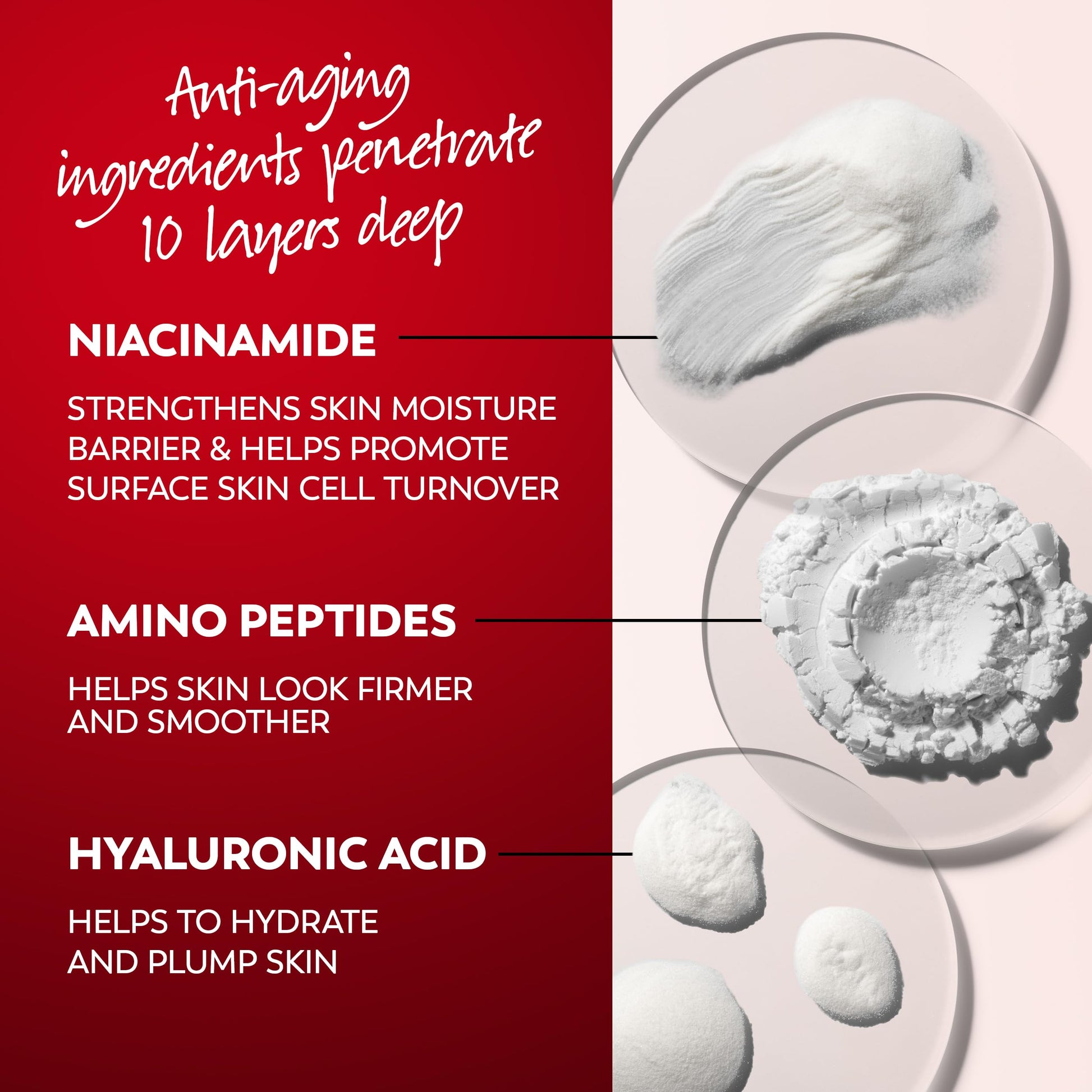 - POWERFUL ANTI-AGING INGREDIENTS: Formulated to deliver Niacinamide, Amino Peptides, and Hyaluronic Acid 10 layers deep into skin's surface to help promote surface skin cell turnover and corrects the appearance of wrinkles.