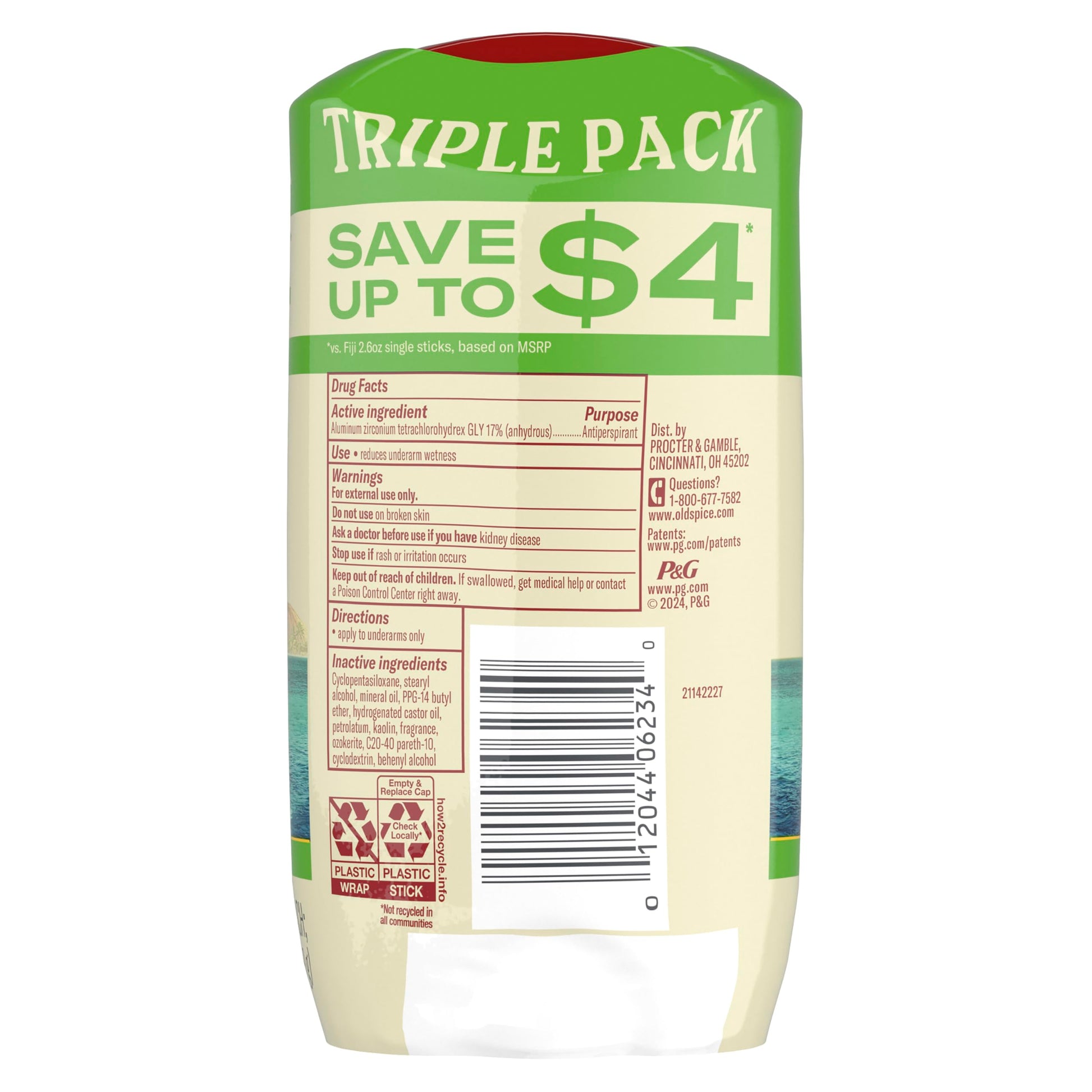 Old Spice Dry Feel Antiperspirant Deodorant for Men, 24/7 Freshness, 24/7 Sweat & Odor Protection, Gentle on Skin with Skin Conditioners, Fiji with Palm Tree + Coconut Scent, 2.6 oz (Pack of 3)