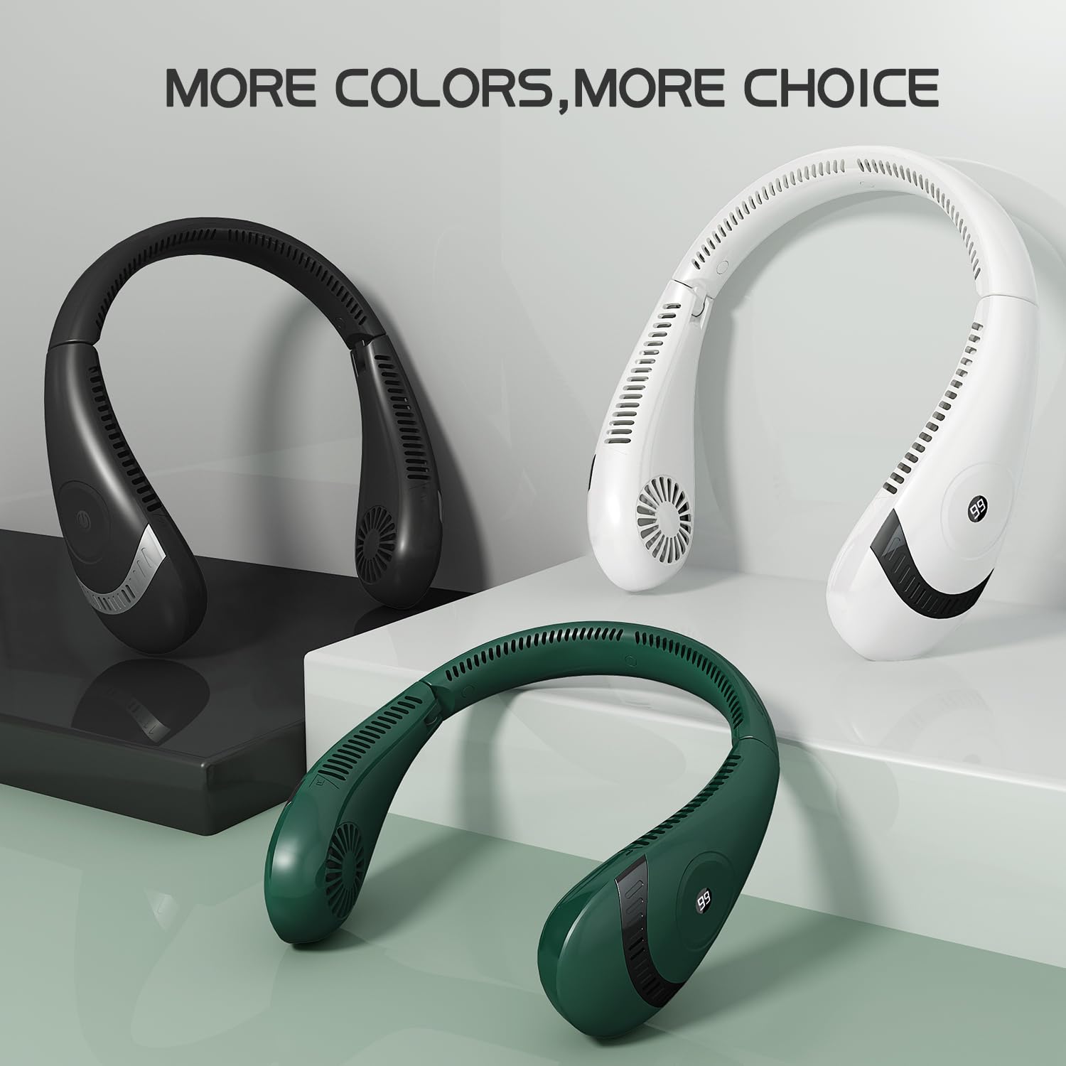 - 【2025 Upgraded Neck Fan】- OLV Latest version foldable neck fan upgraded the airflow and noise reduction function.The wearable neck fan got more powerful airflow and low-noise which keeps your cooling always.With 5000mAh bartteries and double turbine motor design,it will last longer and provide high-velocity wind.Safer than those before and don't worry about your hair being caught or dust,sweat enter the neck fan.Ideal choice as a companion for working in the hot summer.