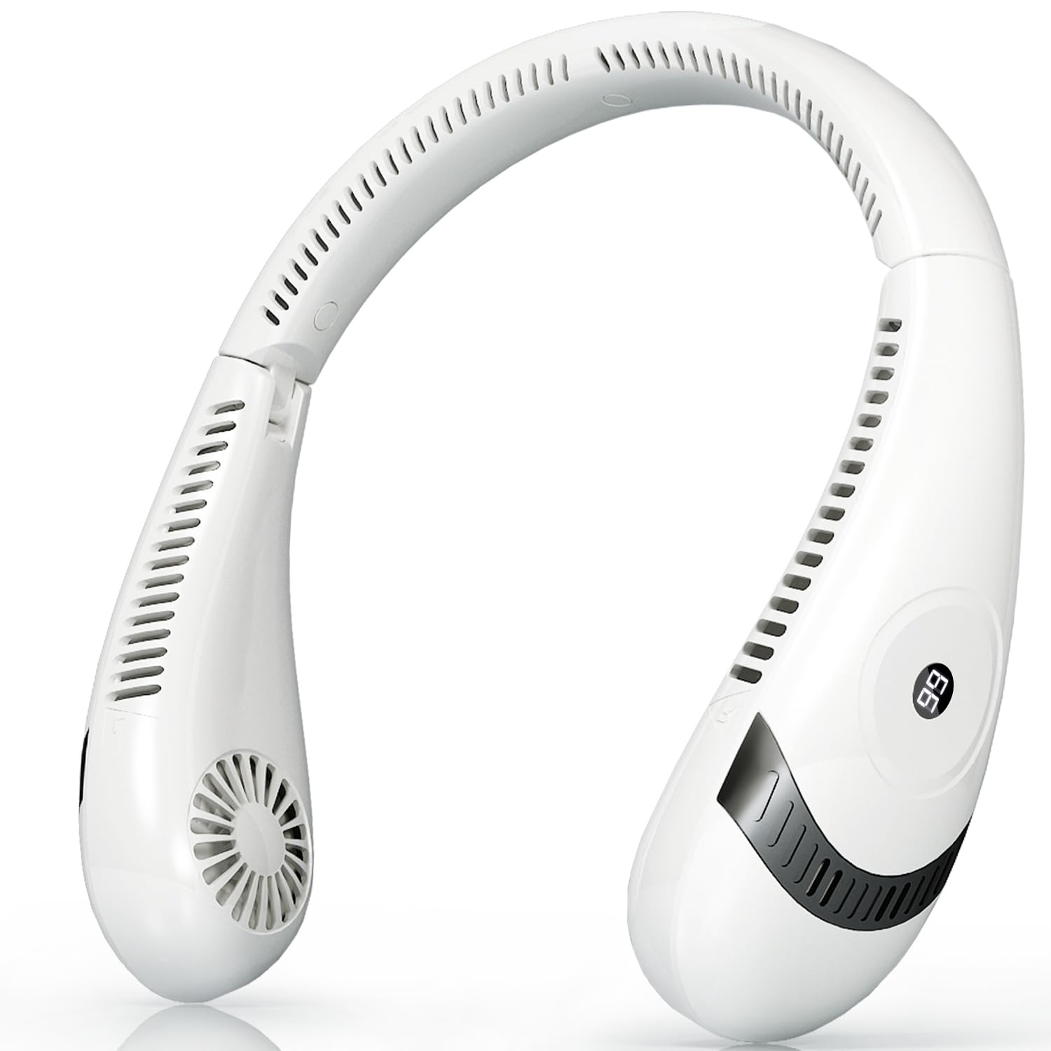 OLV Neck Fan 5000mAh Rechargeable Battery Portable Fan 360° Bladeless Cooling 3 Speeds Powerful Airflow Personal Foldable Neck Fan Gifts for Men Women Home Office,Travel,Sports,Golf,Camping White