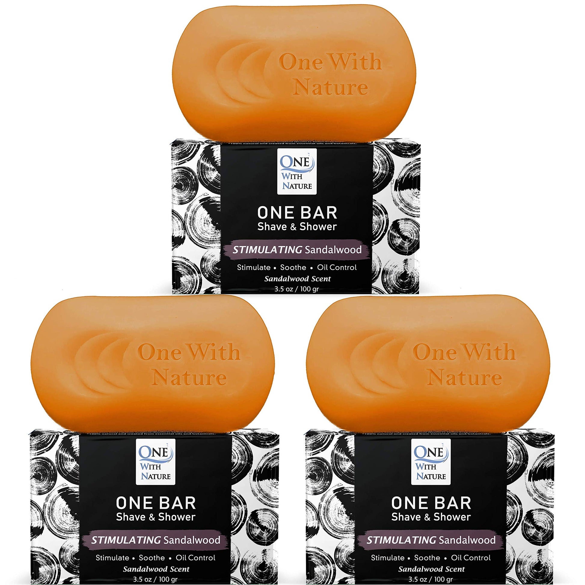 ONE Bar Stimulating Sandalwood 3.5 oz 3 Pack - All in One Shave, Shower, Shampoo for face, beard, body, hair/scalp. SuperFAT “oil” Infused: Avocado, Mango, Olive, Coconut, Argan Oil, Moisturizing.