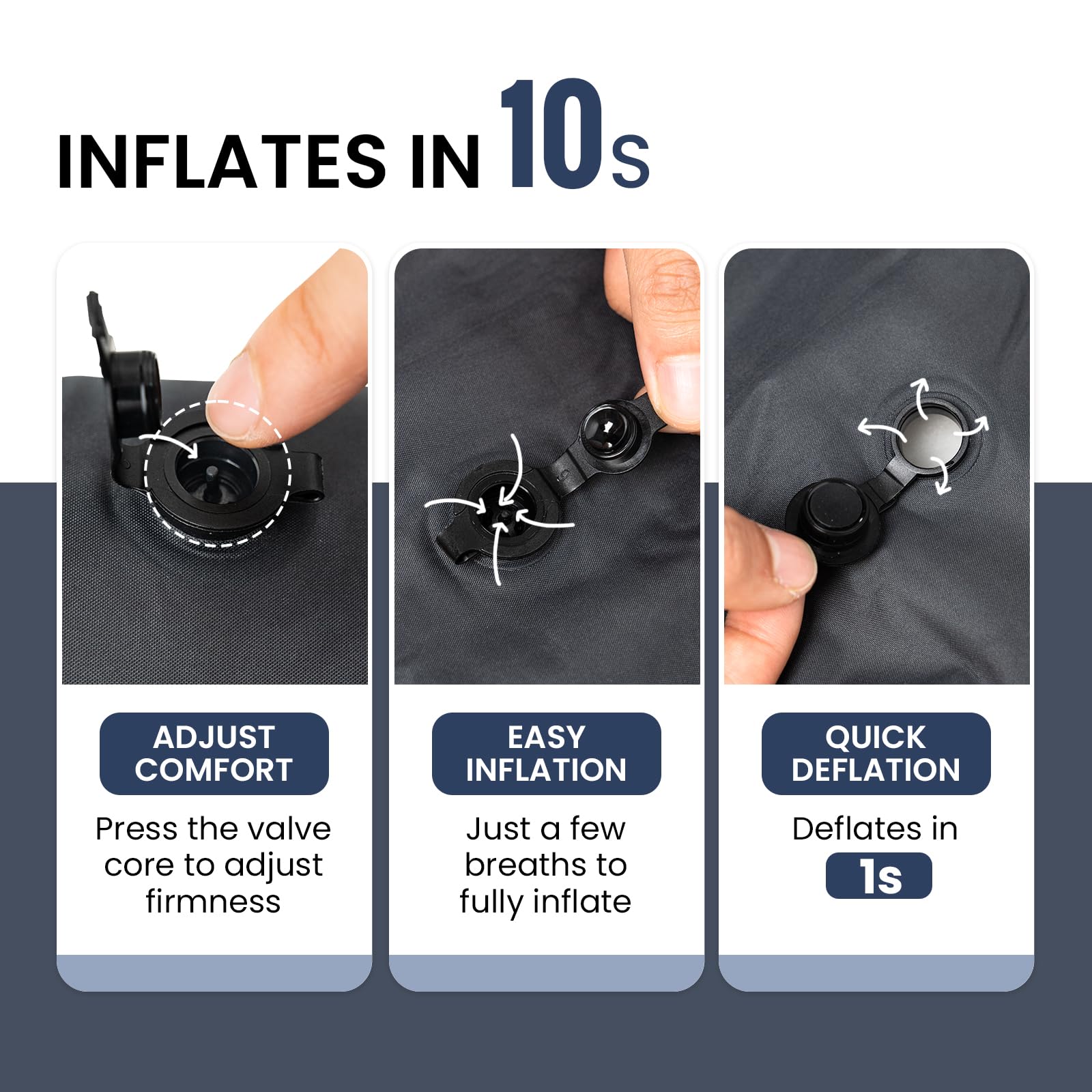 - Versatile Use – Perfect for hiking, camping, backpacking, fishing, beach outings, RV trips, or any outdoor adventure. Whether you're lying in a tent or traveling by plane, the inflatable and cushioned design ensures a comfortable rest wherever you are.