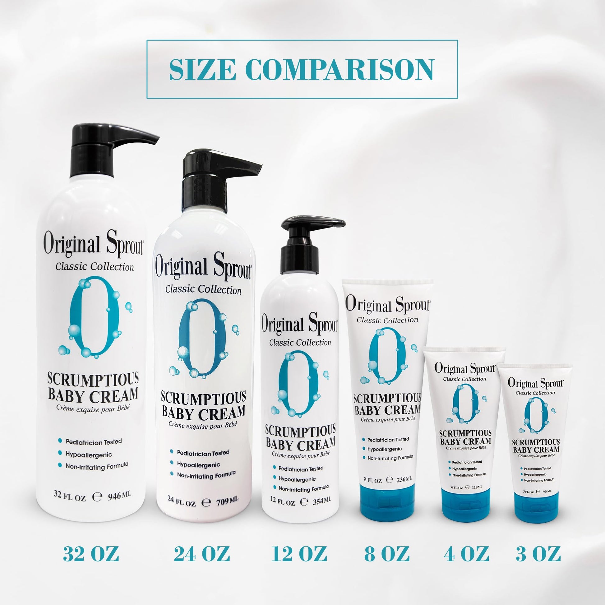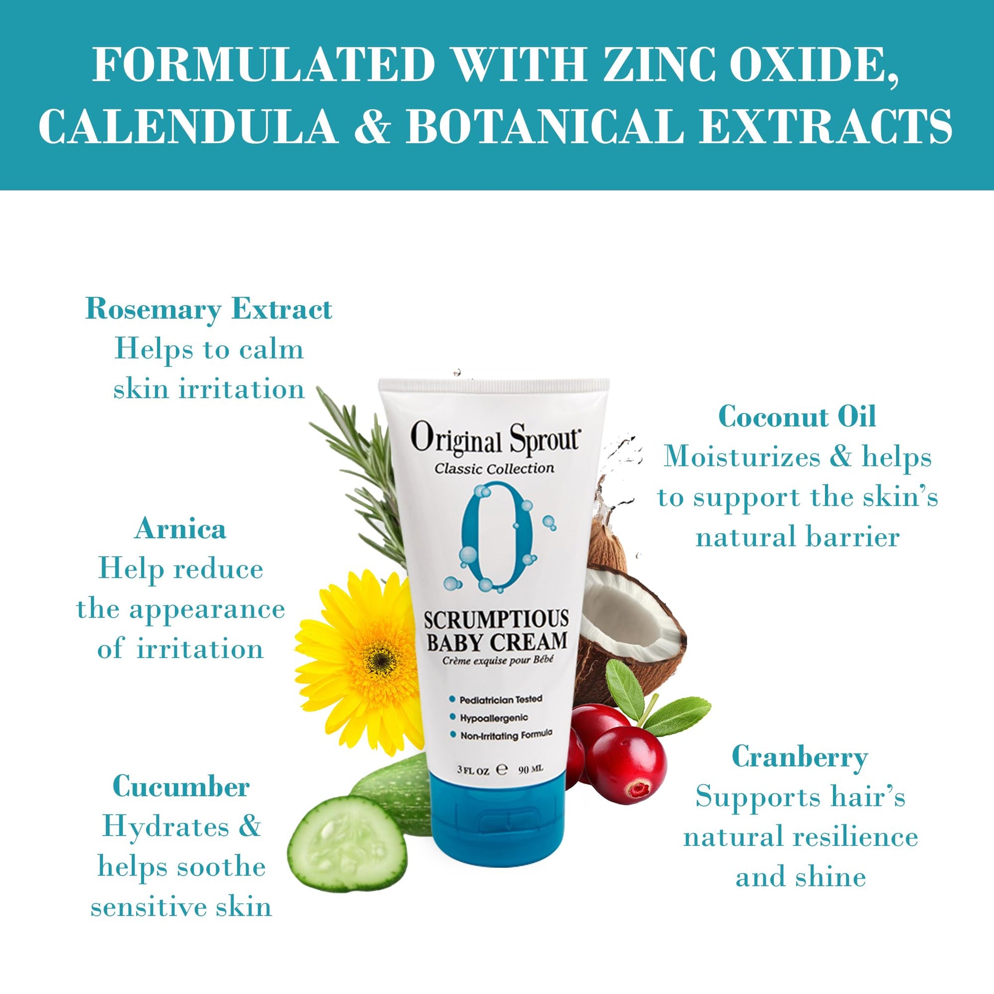 Original Sprout Scrumptious Baby Cream, Gentle Moisturizing Cream for Dry, Sensitive Skin & Diaper Rash, Non-Greasy Baby Lotion with Zinc Oxide & Calendula for Face & Body, 3 fl oz, Travel Size