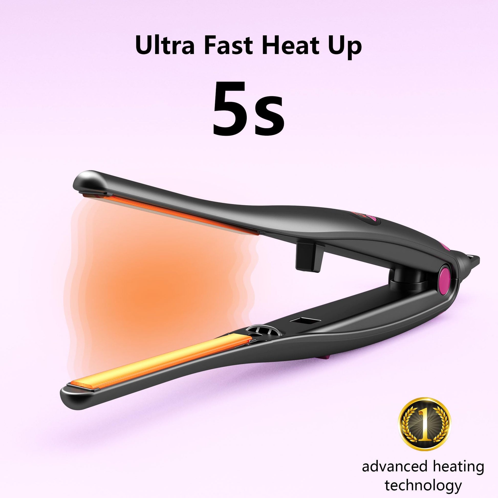 - 【Worldwide Voltage, Compact Size for Traveling】The small hair straightener with 110-240V dual voltage is your best travel companion. It is light weight & compact, easy to fit in your travel bag. The body lock design is a bonus that saves more space for daily storage