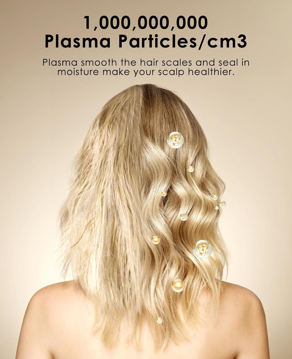 - 【Advanced Plasma Technology】Unlike traditional negative ion hair dryers, this professional plasma hair dryer features superior plasma technology. With 1,000,000,000 plasma particles per cm³, it smooths hair cuticles, seals in moisture, and reduces static, leaving your hair healthier and smoother.