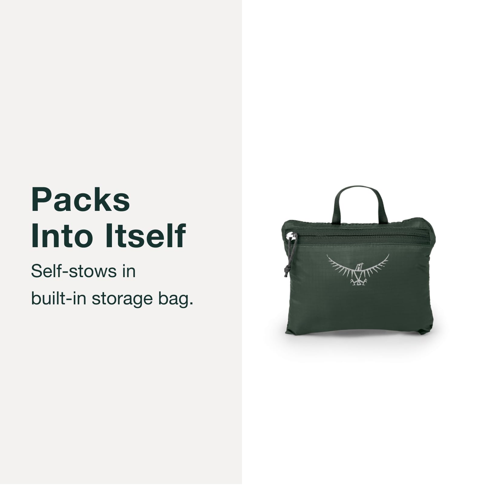 Light in weight, heavy with features. Expand your luggage for day trips at your destination, or have an extra bag for souvenirs on the return journey, with this simple, ultralight and packable day pack that provides capacity on demand. The Osprey Ultralight Stuff Pack bag is part of the coordinated Ultralight System for optimized packing. Customize your experience by adding on smart packing and organization accessories that meet your exact travel, daily, gym, overnight, outdoor or adventure needs. The perfect bag for bringing home souvenirs, hiking through the hills, or exploring new cities and trails. The 18 liter lightweight backpack self-stores within it's own pocket to save space and easily fits in larger bags and luggage or within camping essentials. Osprey is committed to sustainability and we cherish our planet and the opportunities it provides us. We strive to be not only innovators of high-quality products, but responsible citizens who aim to tread lightly as we cherish the world we live, work and play in.
