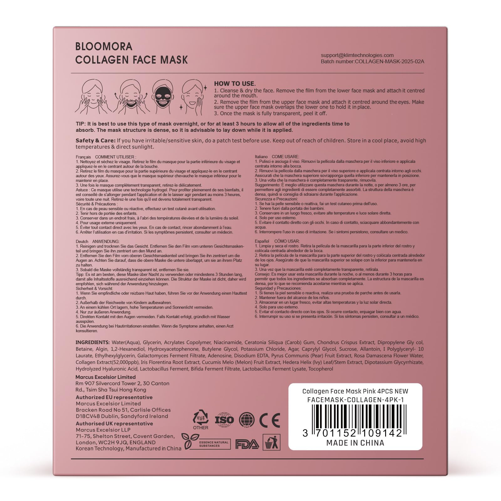 - GENTLE ON THE SKIN: BLOOMORA hydrogel masks are formulated with gentle, skin-friendly ingredients, making them safe and effective for all skin types, including sensitive skin. Experience hydration, brightening, and soothing care with no irritation or discomfort. There are 4x facial masks individually packed in each box.